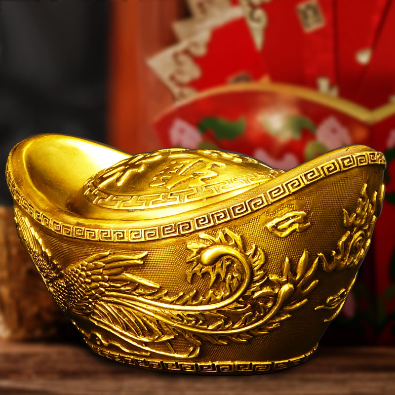 慈风阁黄铜元宝摆件黄铜金元宝聚宝盆开业客厅玄关桌面摆设
