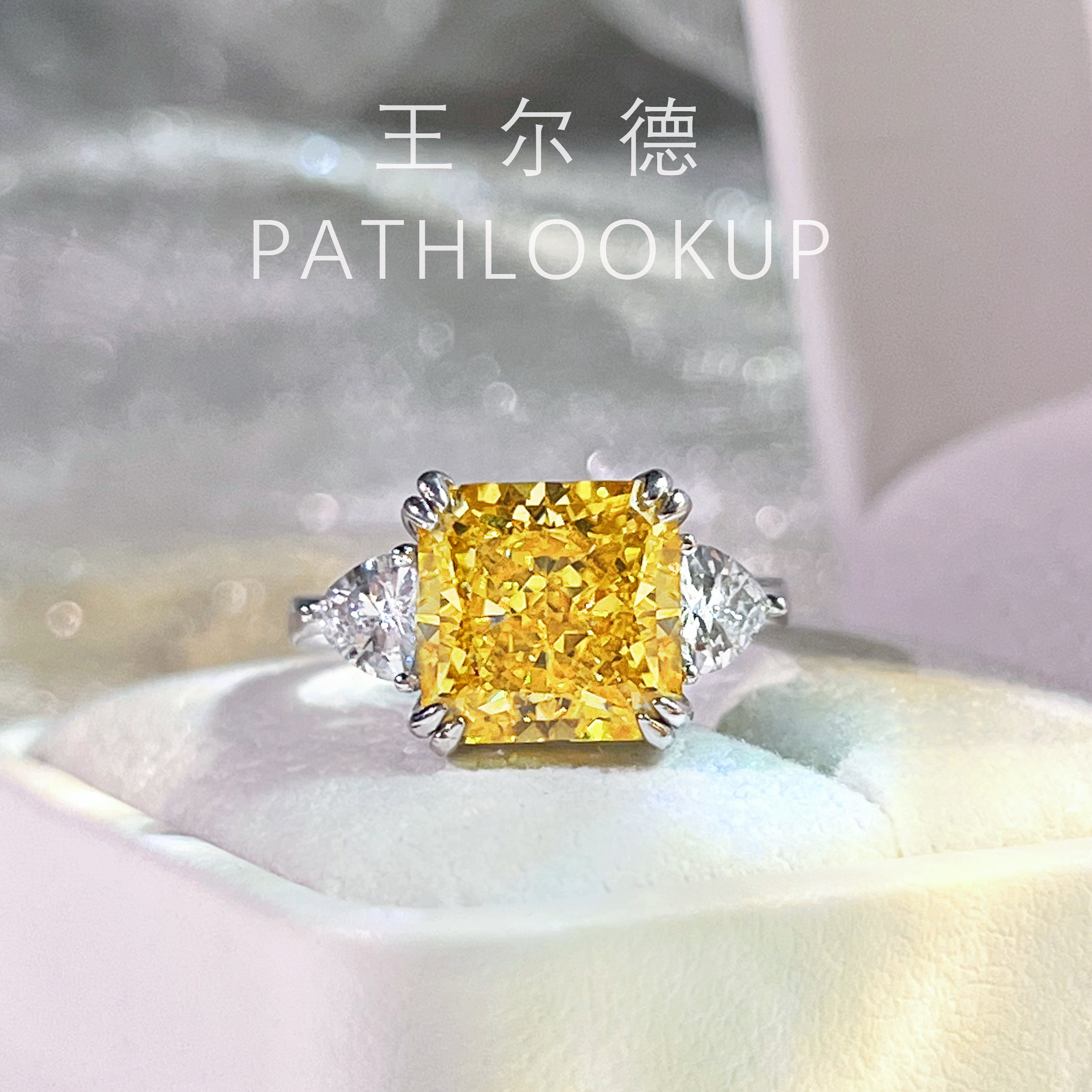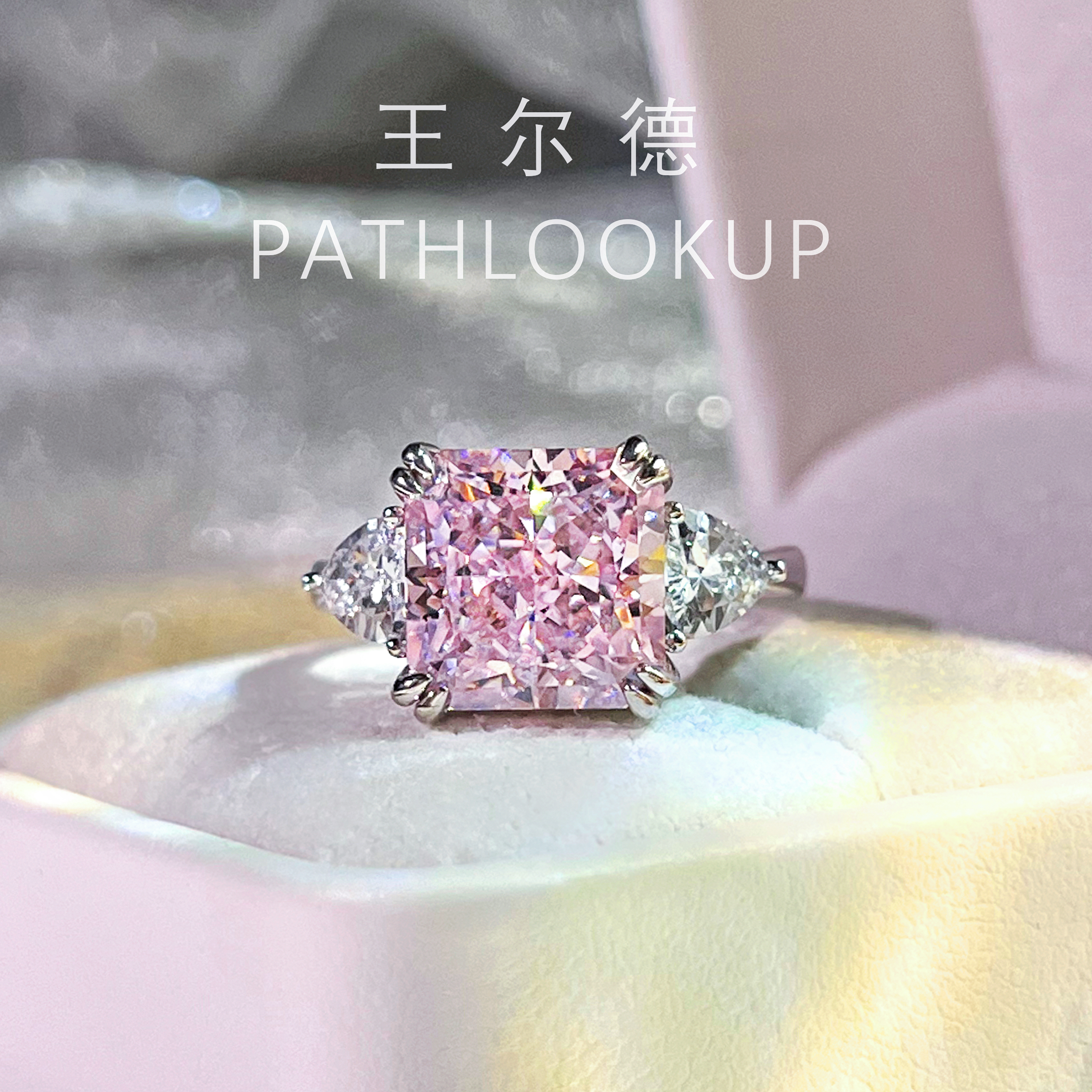 18K金爆闪5克拉正方雷迪恩切奢华高碳钻戒 简约大气方糖戒指礼物