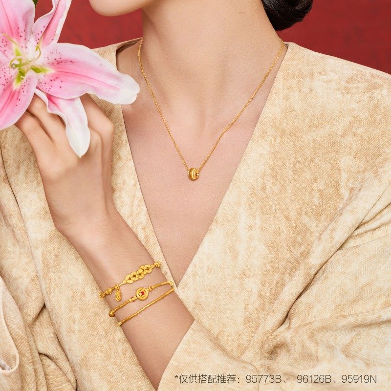 周生生华宇古法黄金足金五帝钱币盘缠金铜钱手链手串95773B计价