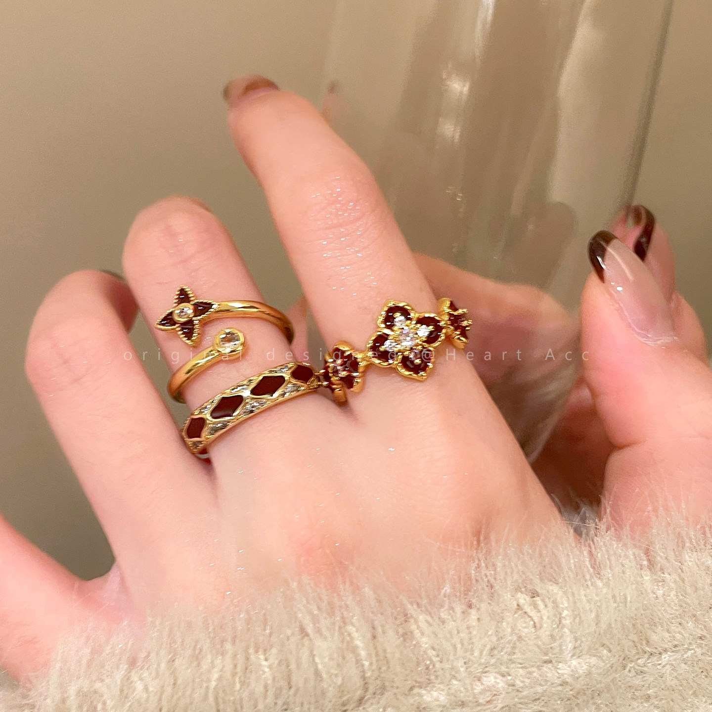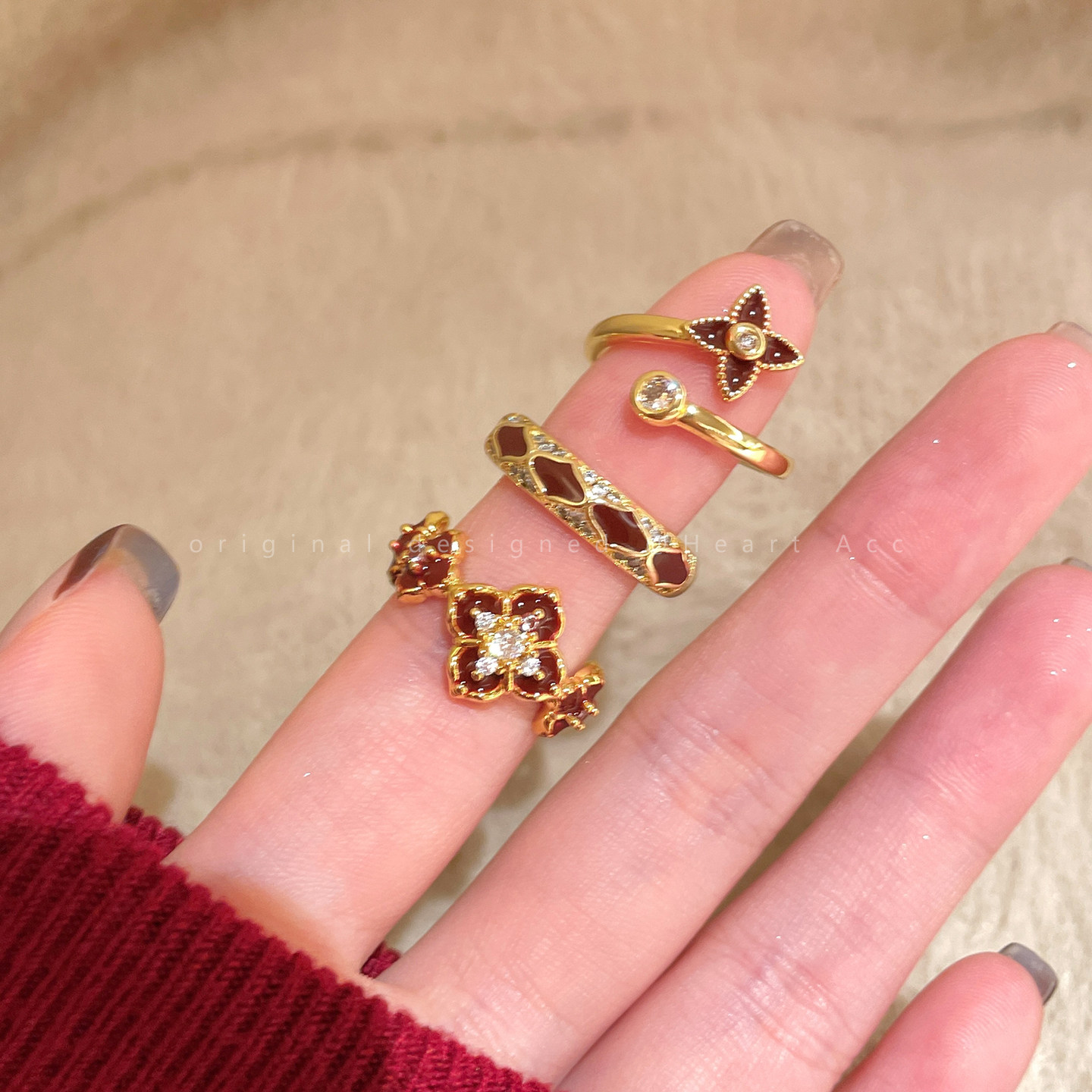 红色珐琅开口戒指女轻奢高级感小众精致食指戒超好看独特漂亮指环