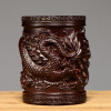 黑檀木雕祥龙笔筒摆件实木质雕刻家居办公室摆设商务送礼工艺品
