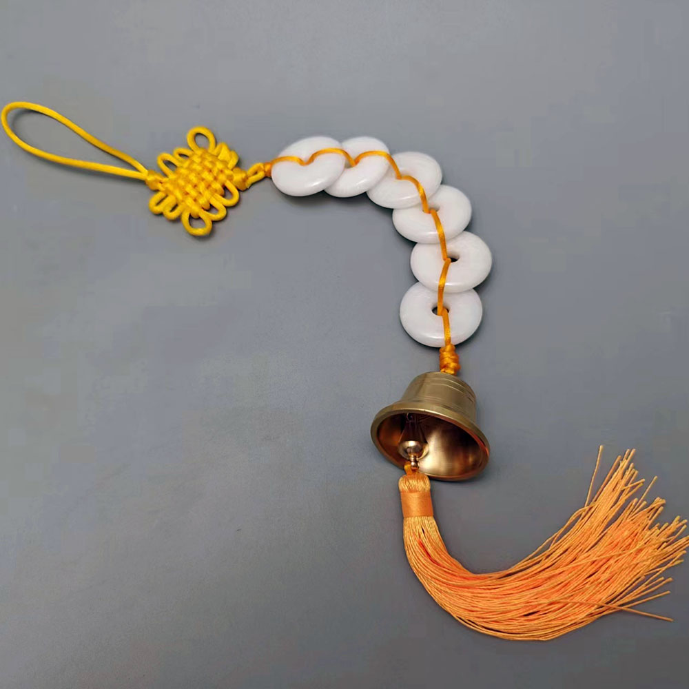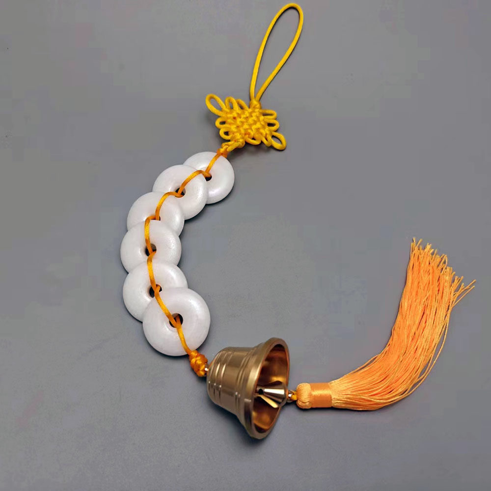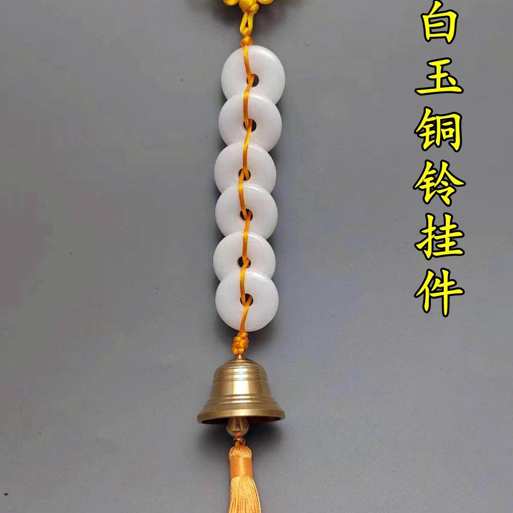 天然汉白玉六白玉纯铜铃铛挂件中式吉祥家居饰品