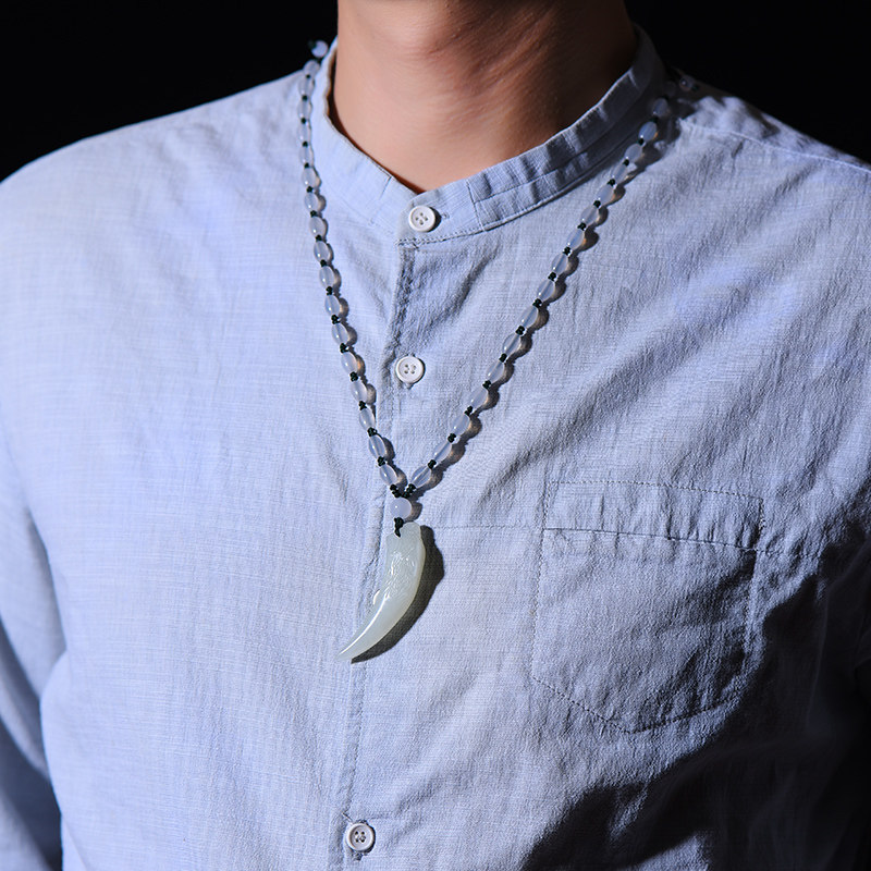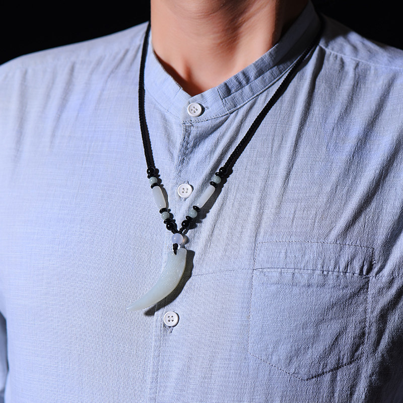 天然和田玉真品狼牙吊坠男士项链平安护身符牙齿挂件玉坠玉佩饰品