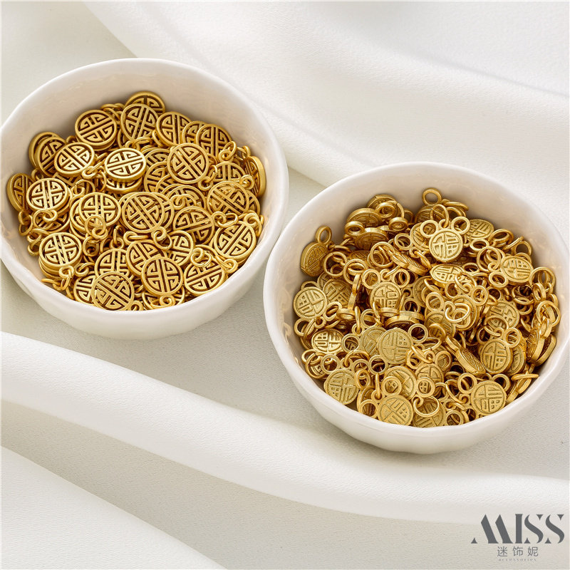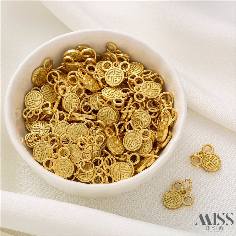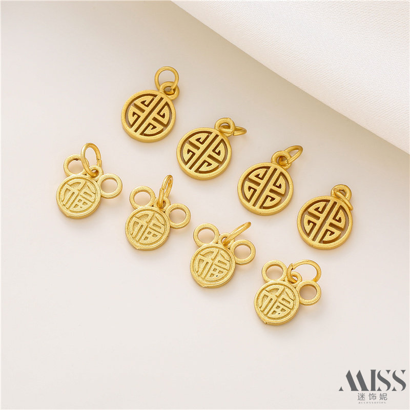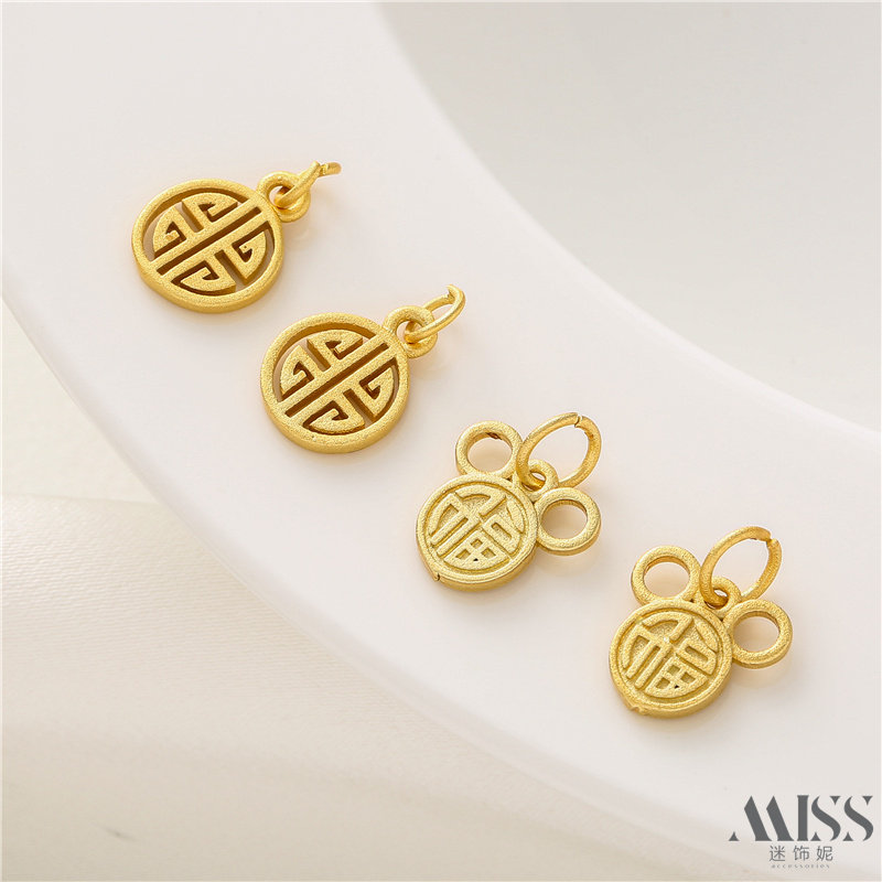 18K沙金哑金保色寿字双耳福字圆牌吊坠diy手链项链小吊饰挂件配件
