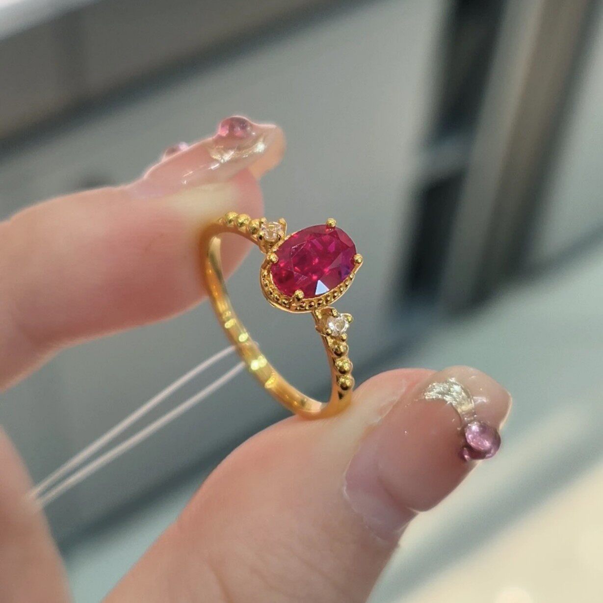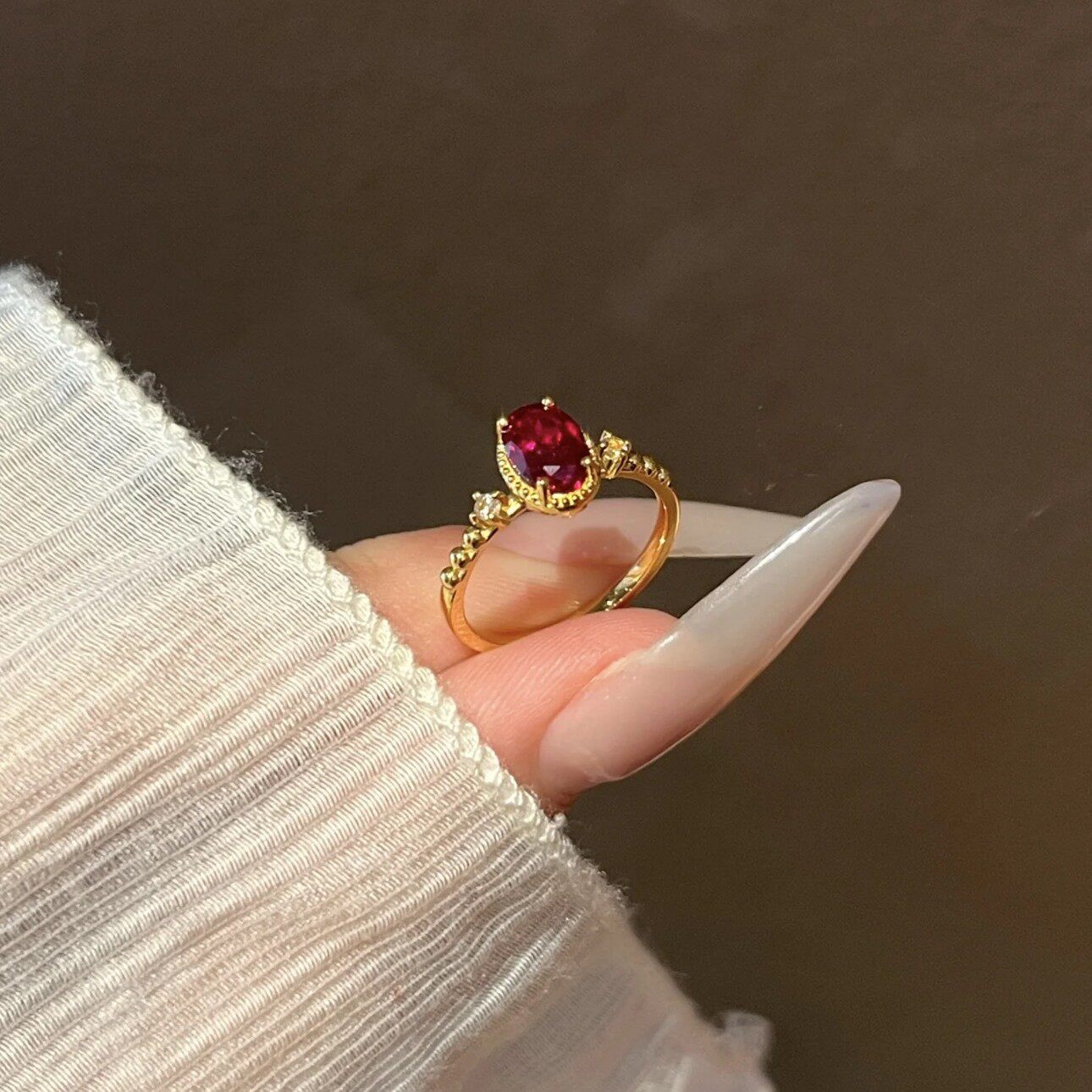 富贵高级感斯嘉丽红宝石戒指女轻奢小众高级感食指戒精致时尚指环