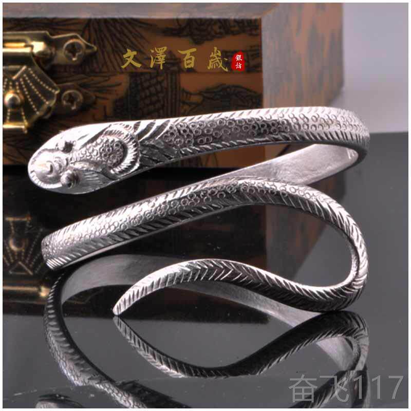 正品灵花蛇雪银99银手镯手环银饰6品手工定9做个性生肖蛇订制NO13