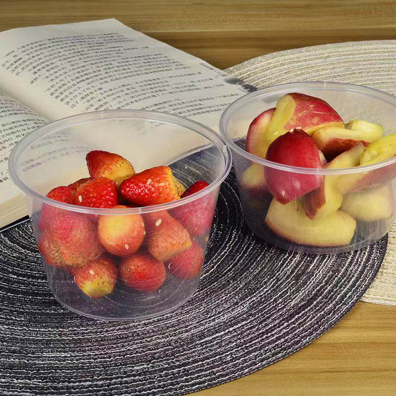 一次性餐盒圆形透明1000毫升带盖子打包外卖饭盒加厚塑料快餐保鲜