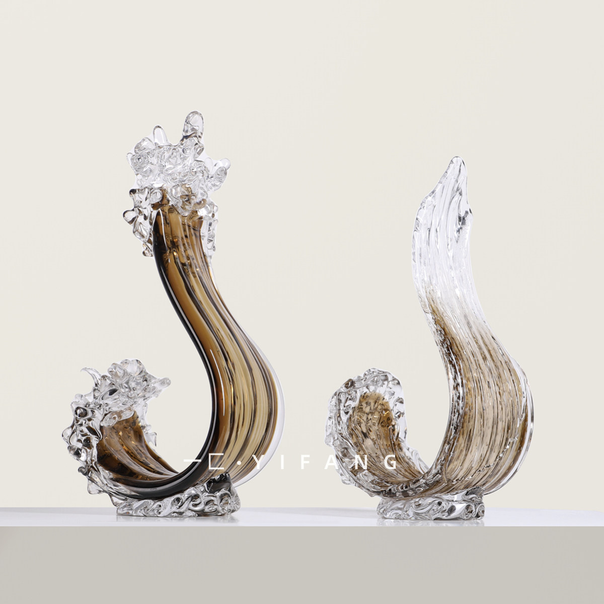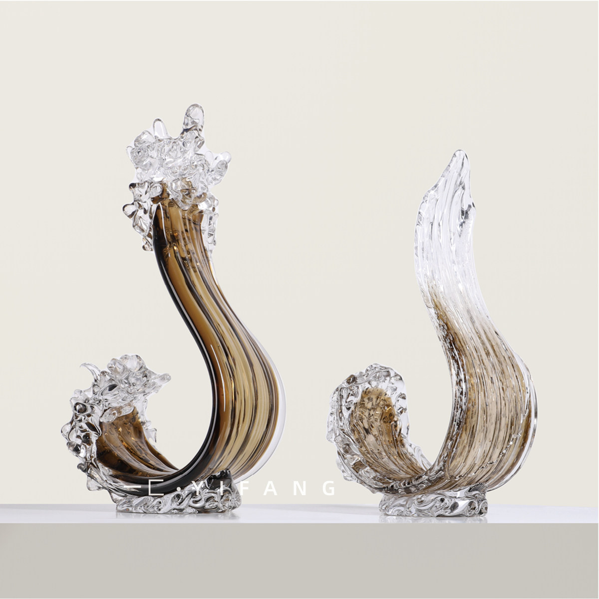 一匚现代北欧琉璃流线橙色摆件条纹 售楼处营销中心酒店客厅玄关