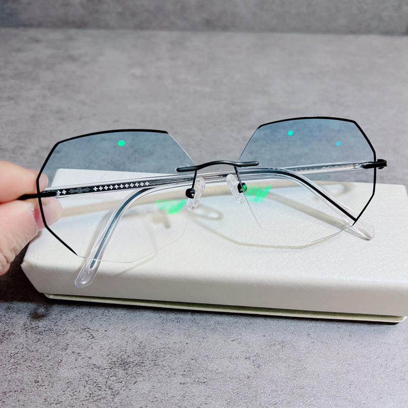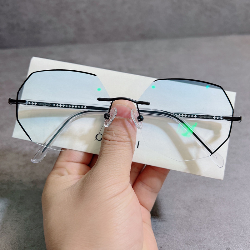 配无框近视眼镜男女75/100/150/200/250/300/500度防蓝光变色成品