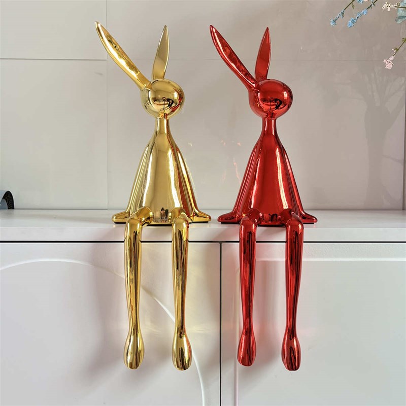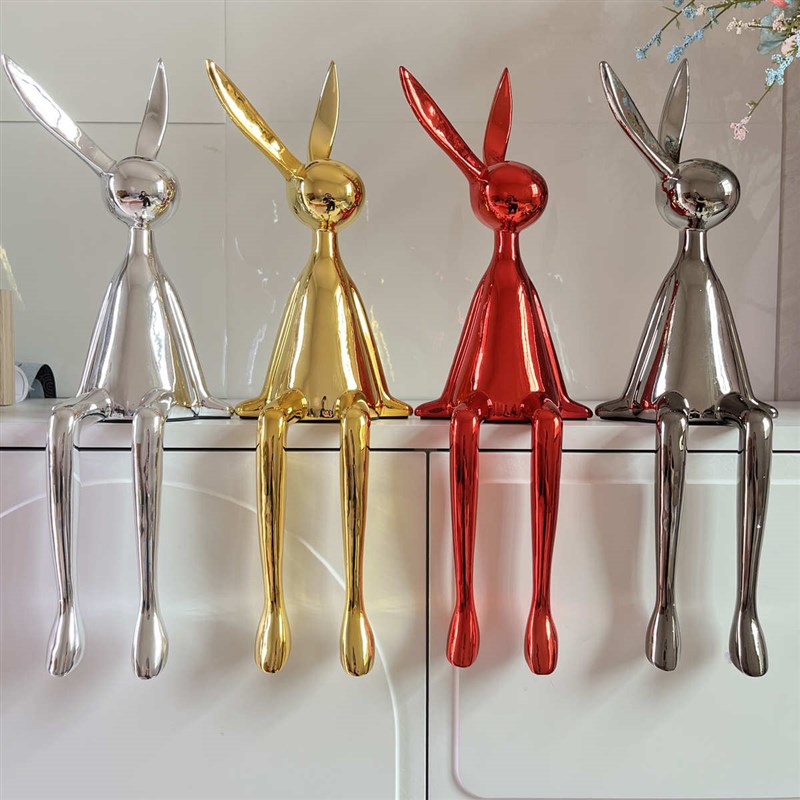 摆件格摆设桌面电视柜新款兔子开放电镀现代装饰品大坐姿玄关书柜