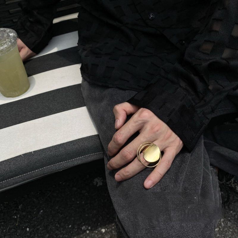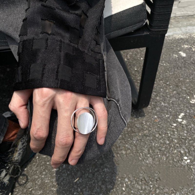 欧美个性宽版高级拉丝几何指环女复古小众设计感开口光面食指指环
