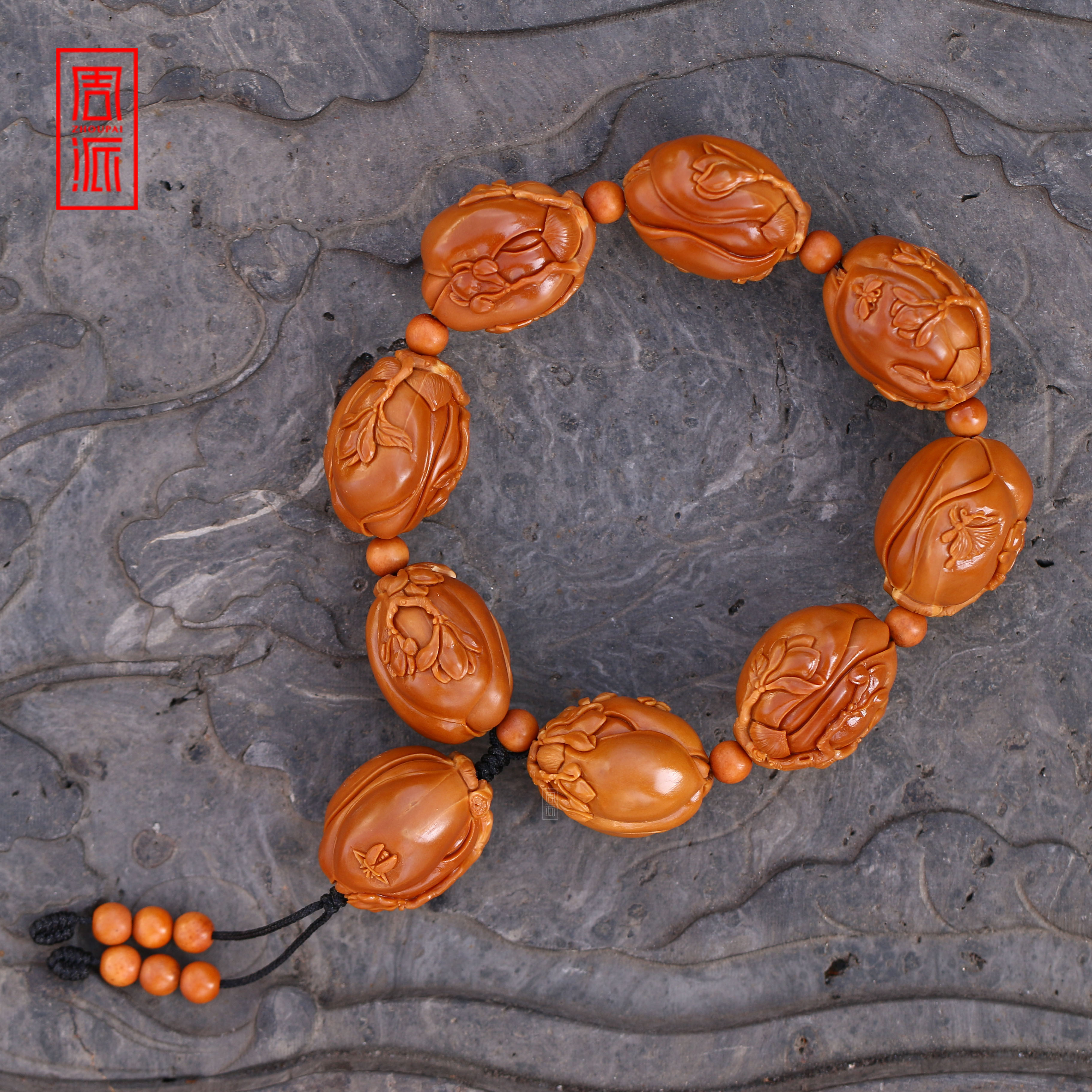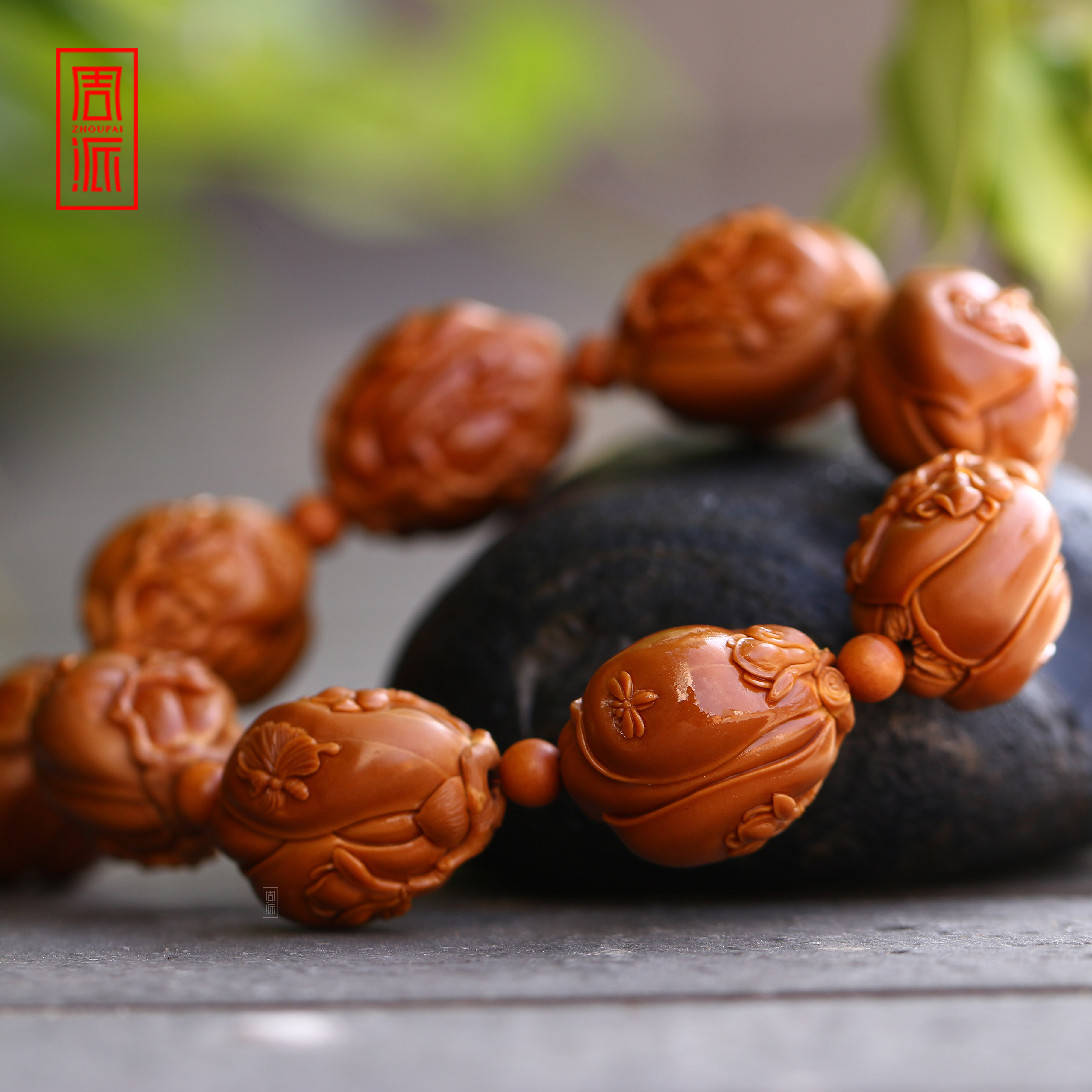 周派周泉兴玉兰花铁核橄榄核手串文玩核雕纯手工雕刻