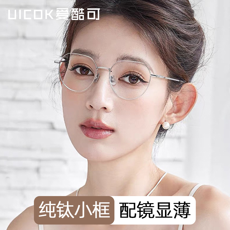 超轻纯钛小脸适合的近视眼镜框女多边形小框眼镜架女款可配高度数