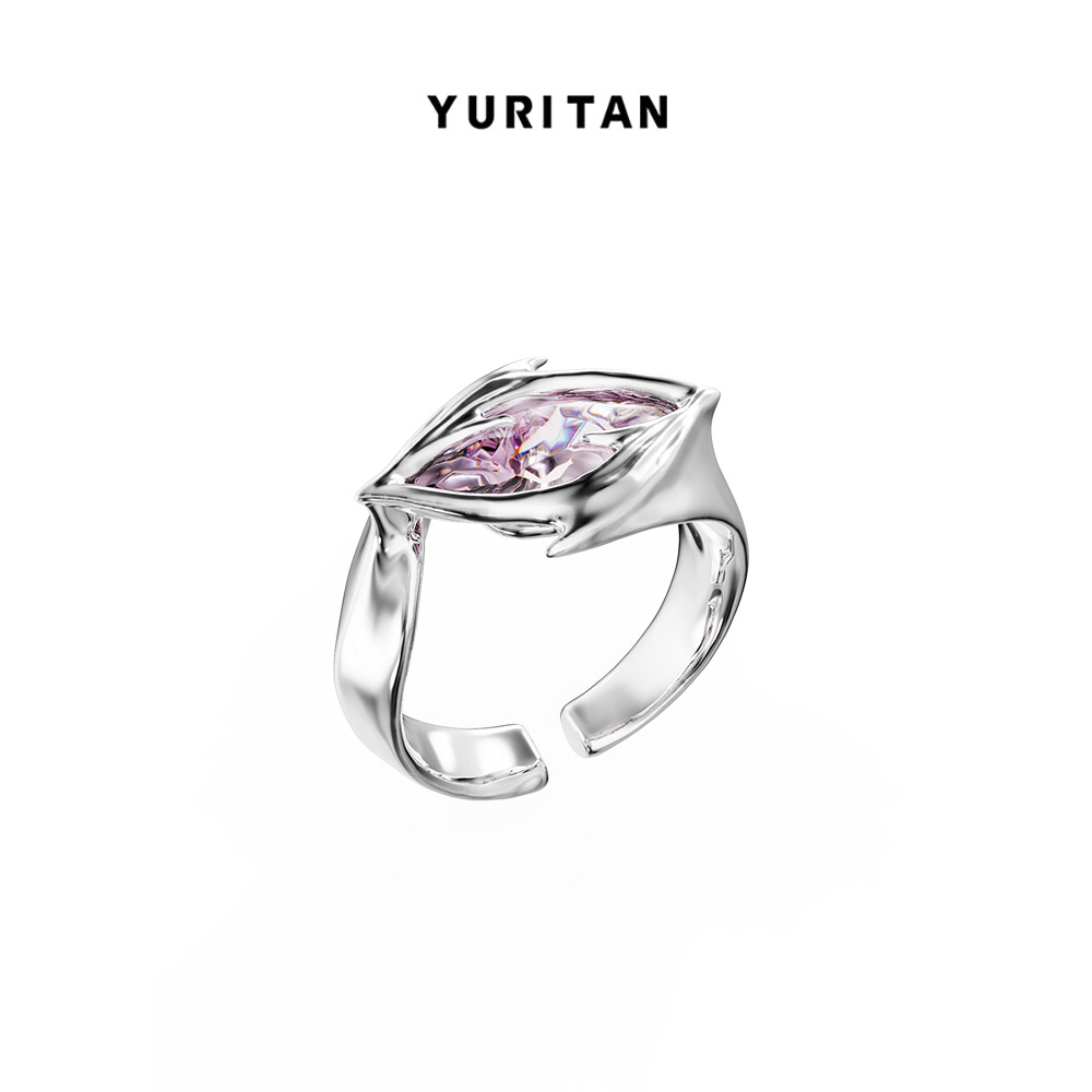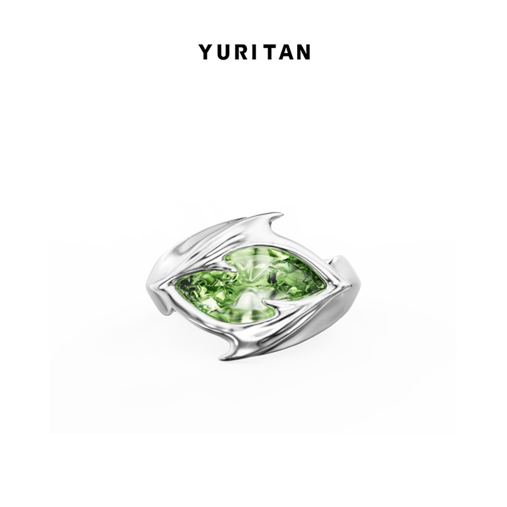 YURITAN海洋鲨鱼鳍橄榄钻开口戒指深海系列原创设计镀金镶钻女戒