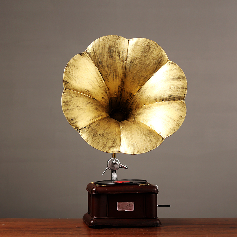 优选覆古别墅样板房欧式装饰v摆件家居客厅L酒柜铁艺留声机模型摆