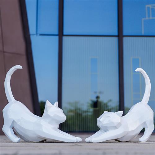 玻璃钢抽象几何猫雕塑户外花园林商场楼盘动物模型景观装饰品摆件