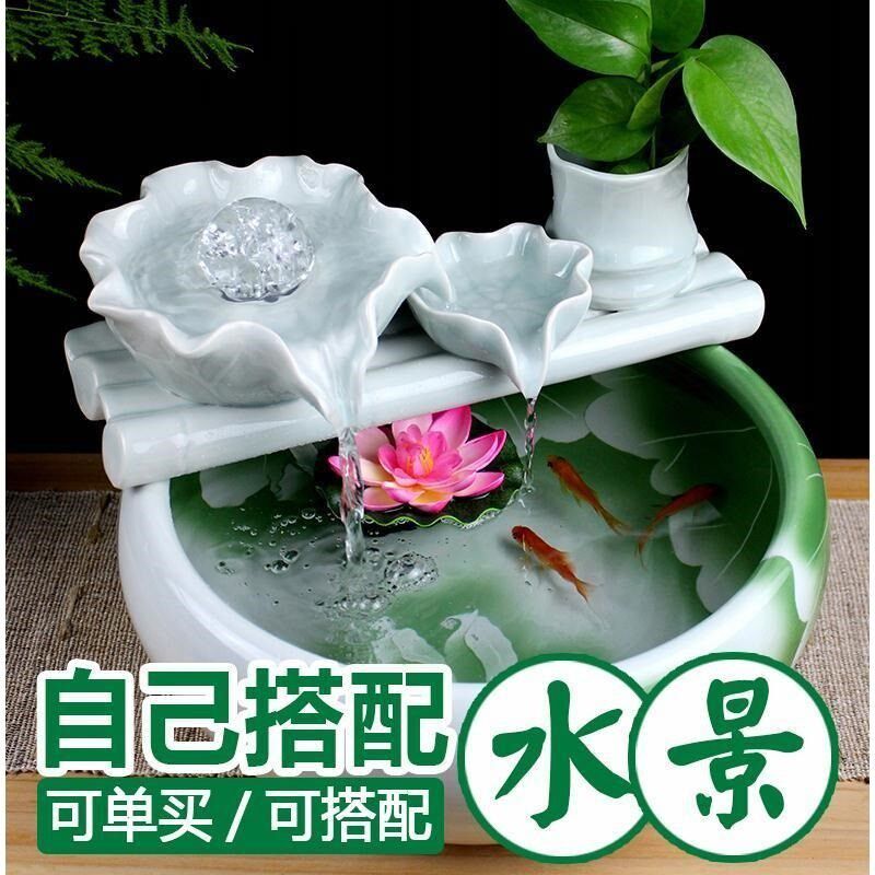 陶瓷鱼缸流水器家居客厅电视柜招财自动循环养鱼盆金鱼缸加湿摆件