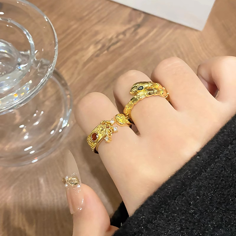 红魅满锆个性灵蛇开口时尚轻奢高级感冷淡风流苏指环
