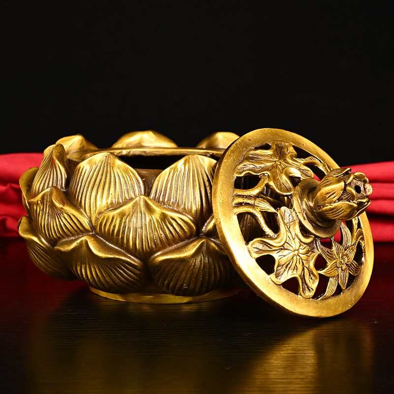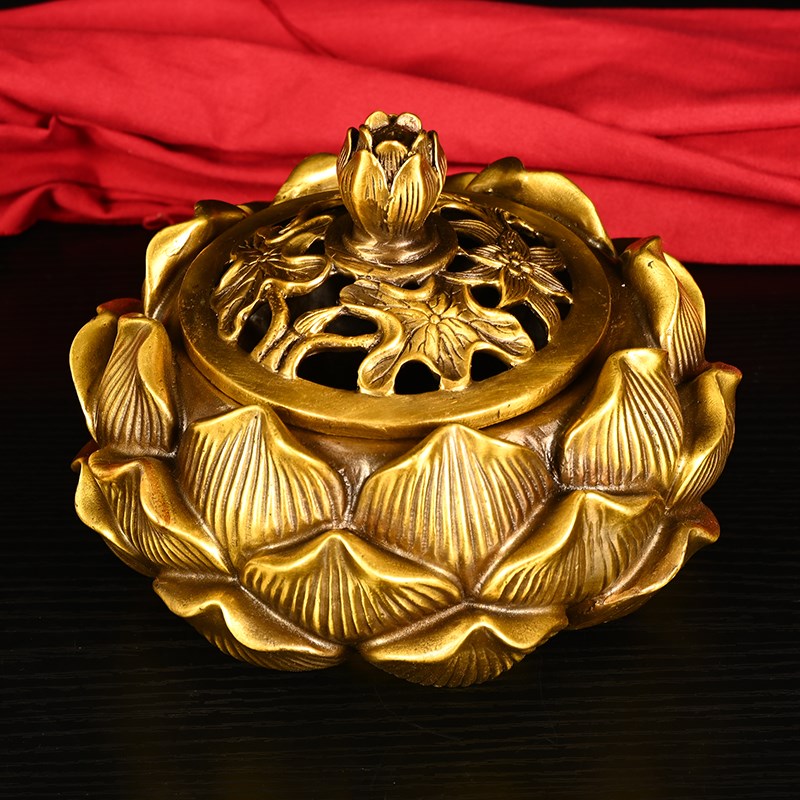 速发纯铜香炉摆件莲花香薰炉家用供佛线 香香插炉线香佛具用品