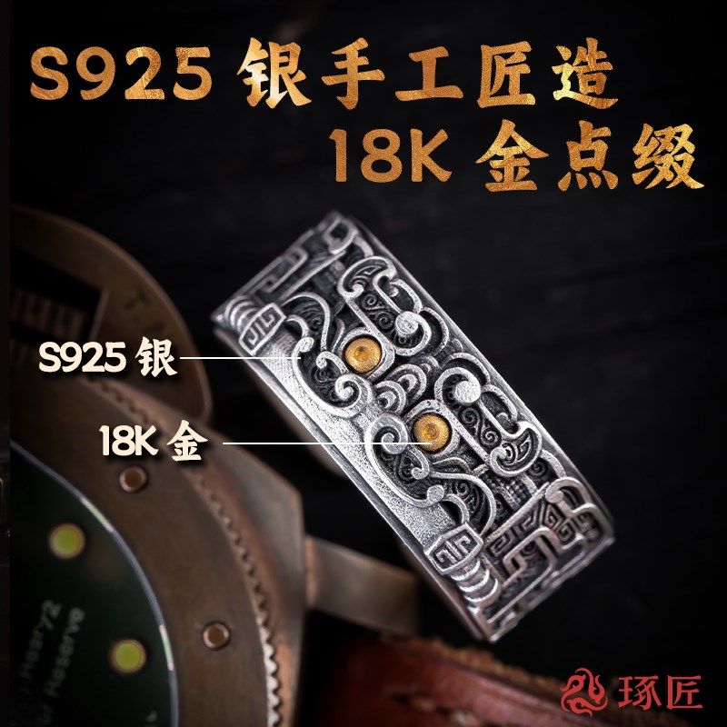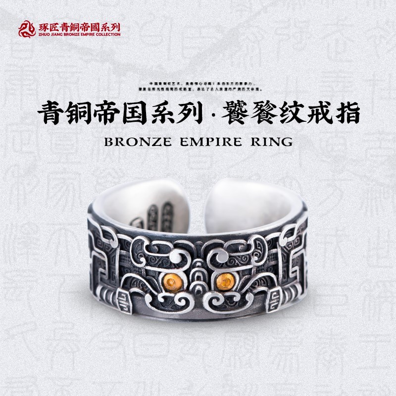 琢匠青铜帝国系列古法饕餮纹戒指男士银饰K开口可调节对戒复古指