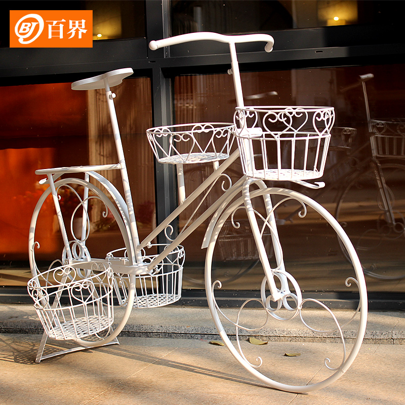 创意店铺橱窗装饰拍摄落地摆件道具家居饰品自行车服装店铁艺花架