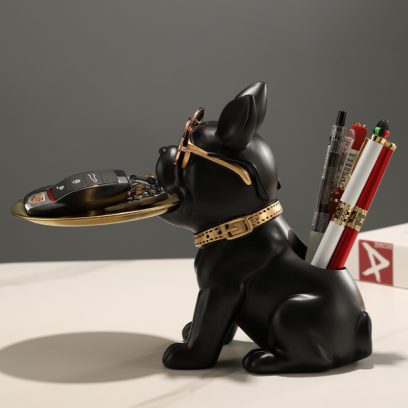 创意笔筒法斗犬玄关钥匙收纳狗摆件客厅电视柜乔迁V托盘装饰品礼