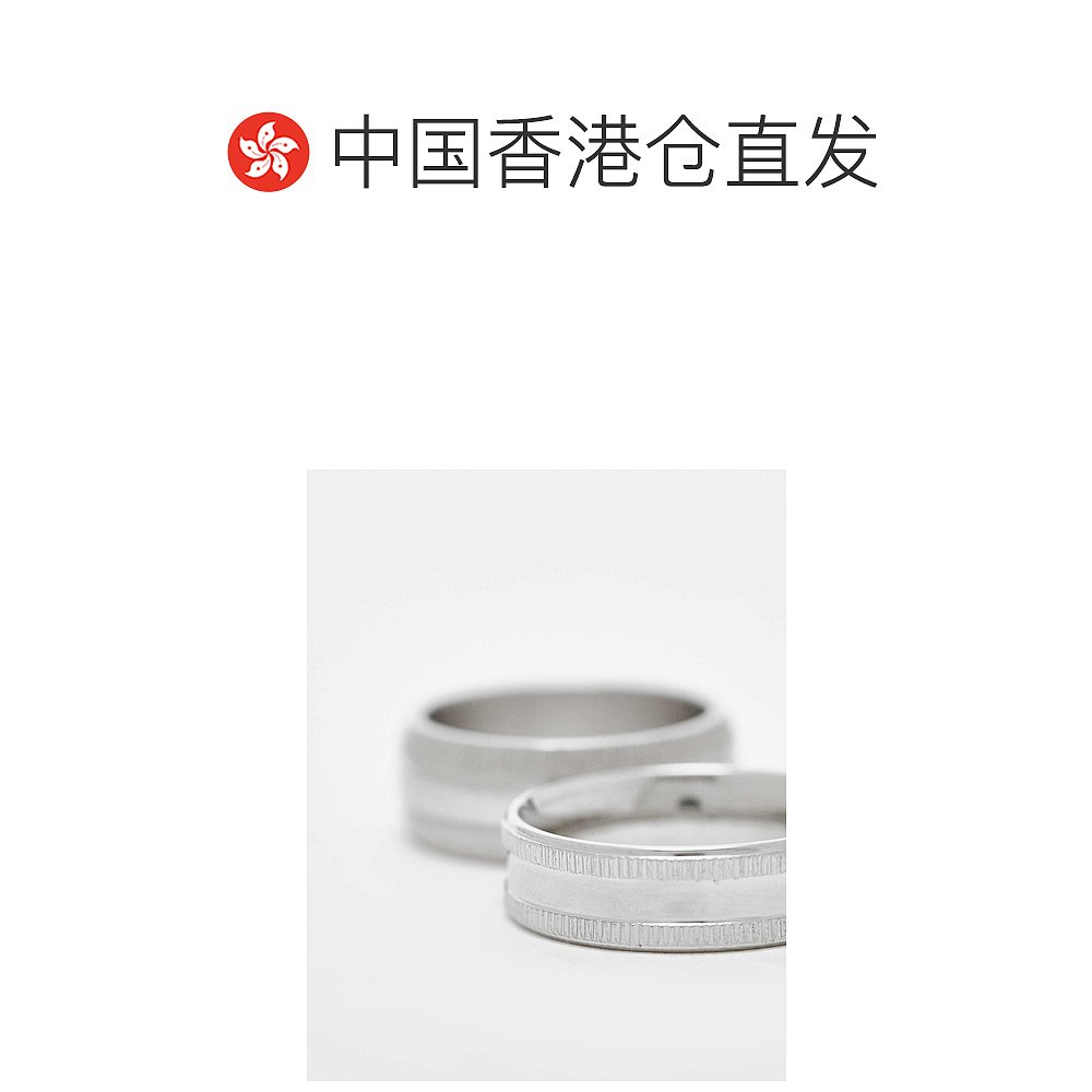 香港直邮ASOS 男士 设计防水不锈钢色调戒指套装(2件套)(银色)