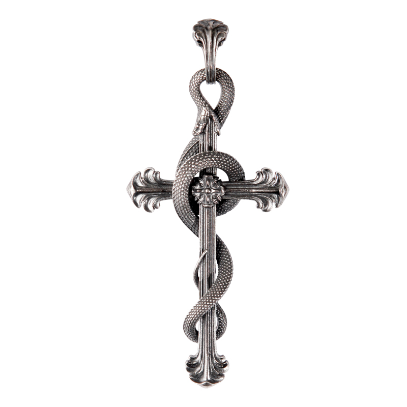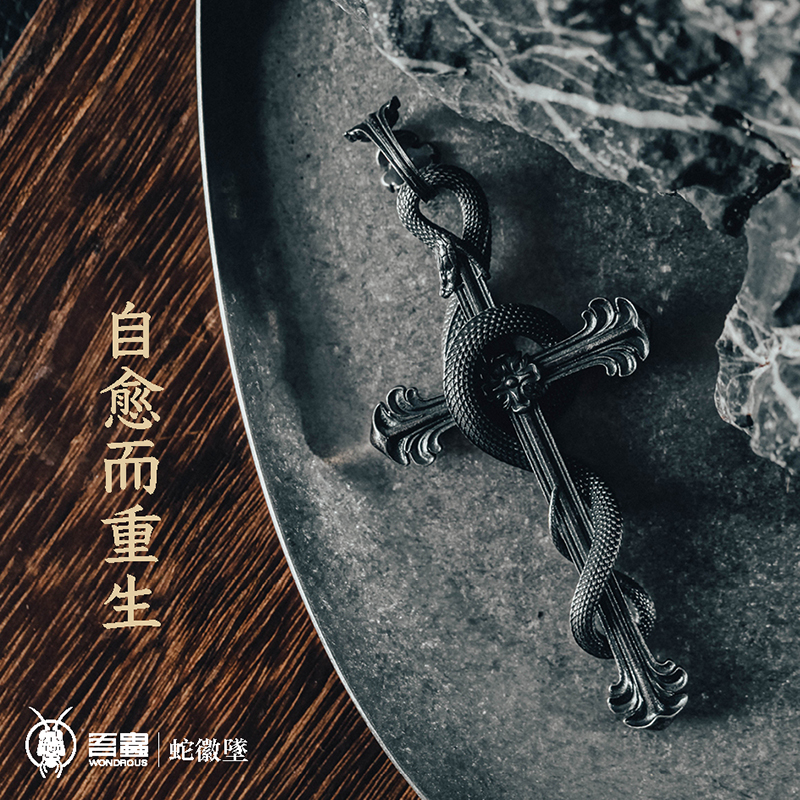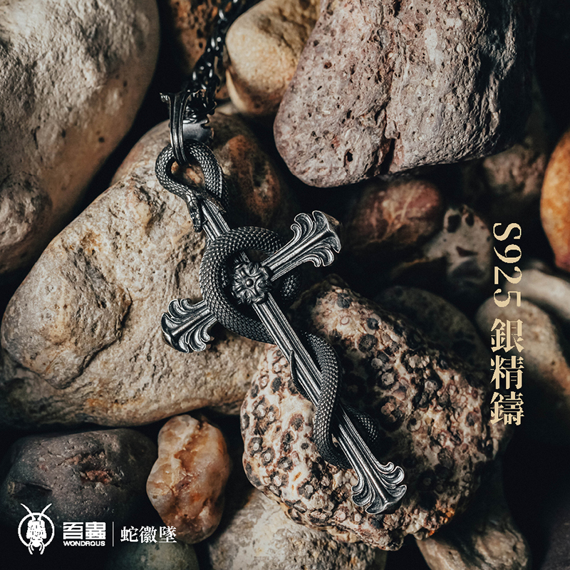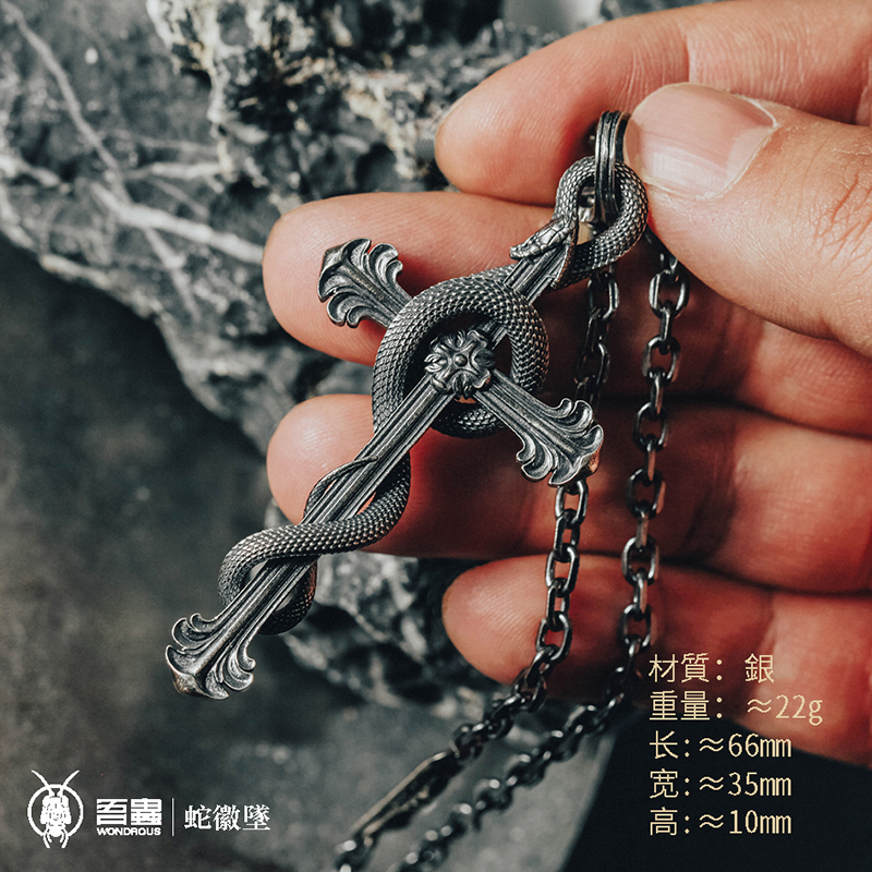 吾蟲原创十字蛇徽吊坠银挂坠项链坠男女饰品车钥匙挂件灵动蛇礼品