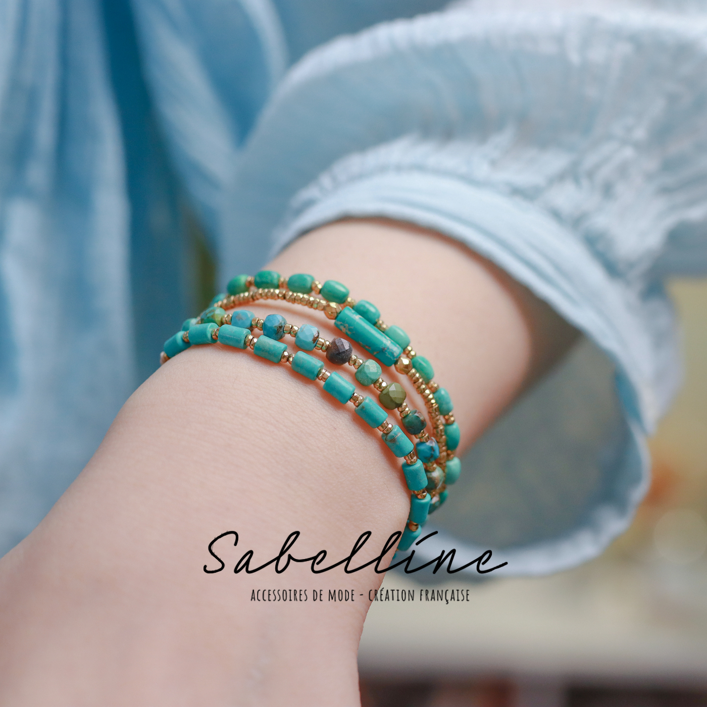 里昂 Sabelline小众串珠天然绿松石清新夏威夷浪漫绿色天使手链