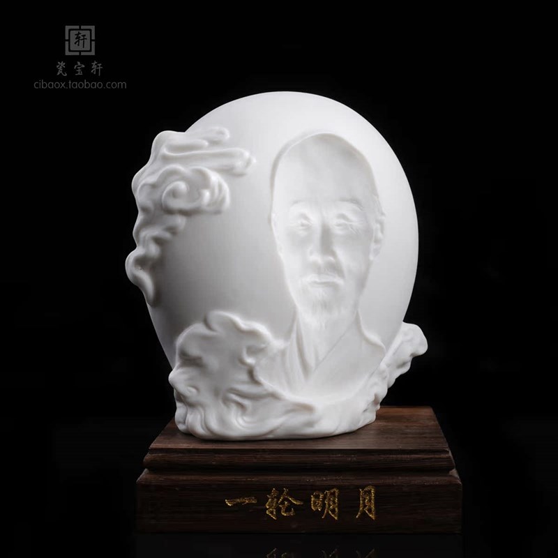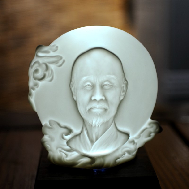 桌面弘一法师头像雕刻摆件德化白瓷陶瓷带灯装饰工艺品摆件