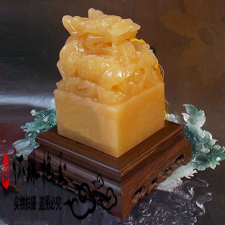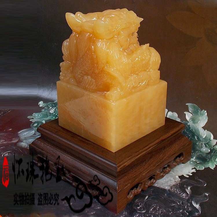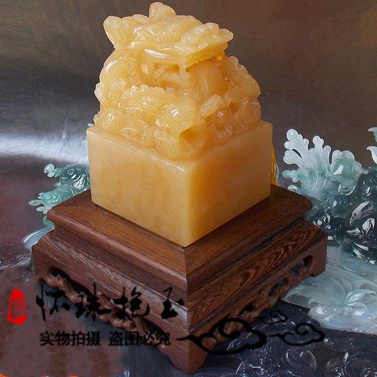 印章玉玺摆件 黄玉龙玺天然黄玉印章商务礼批发