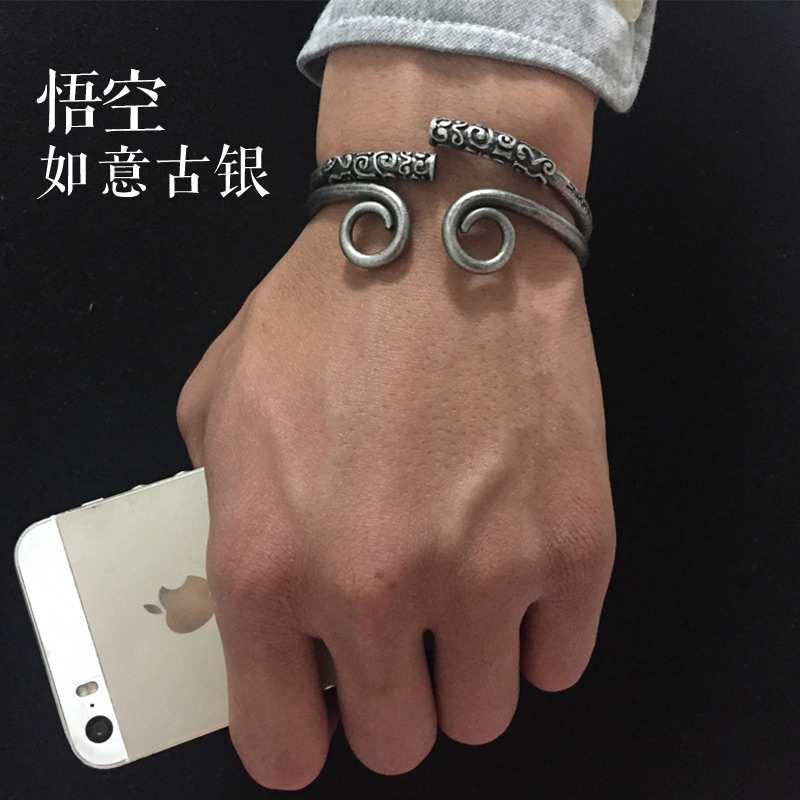 原创潮牌孙悟空钛钢紧箍咒手镯能量开口手环情侣金箍棒手镯戴荃