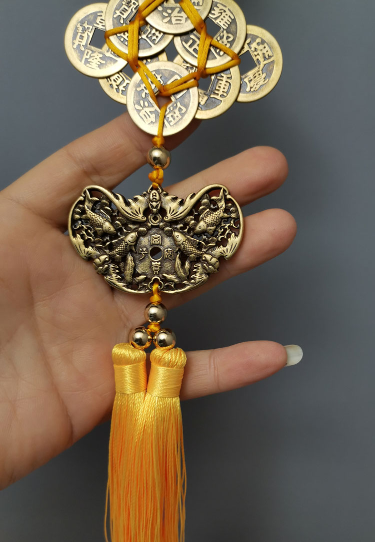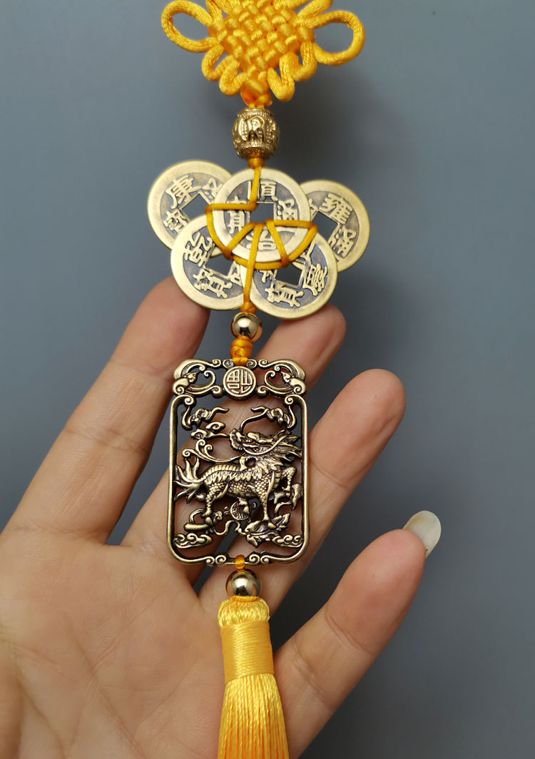 纯铜五帝钱六帝铜钱铜铃挂饰麒麟五帝钱家居大门挂件饰品