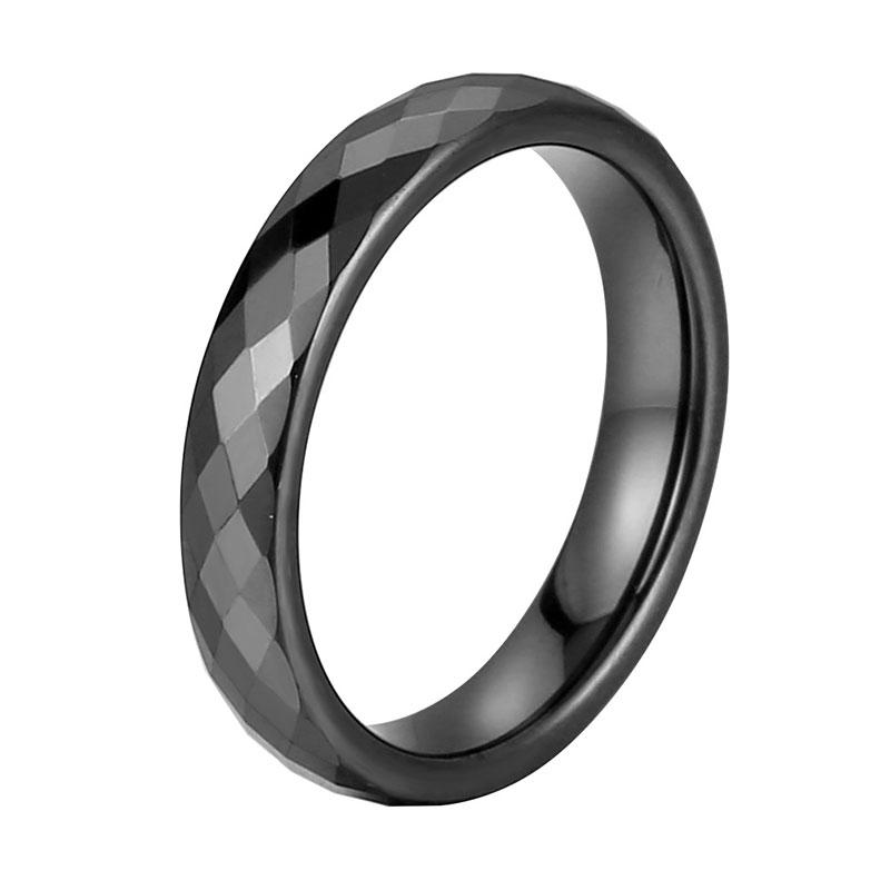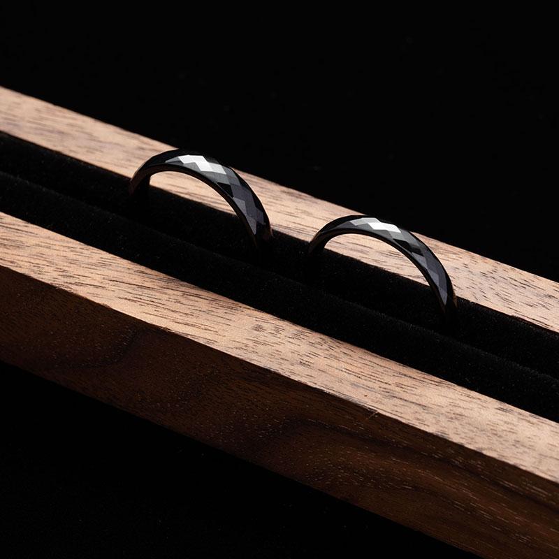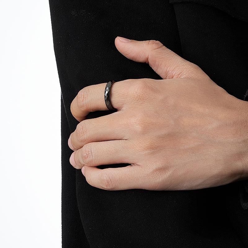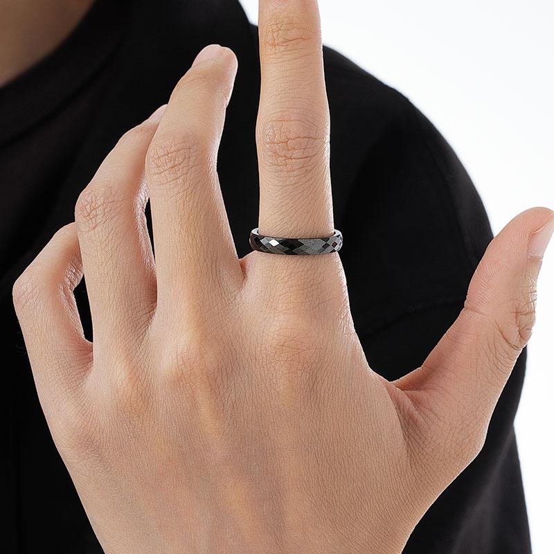 ACITY喜城百搭菱形面黑色陶瓷戒指男女切面高级感素圈食指戒指环