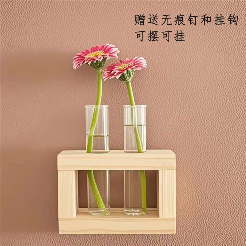 水培花瓶试管插花植物容器简约木架摆件台面装饰玻璃桌面花架环创