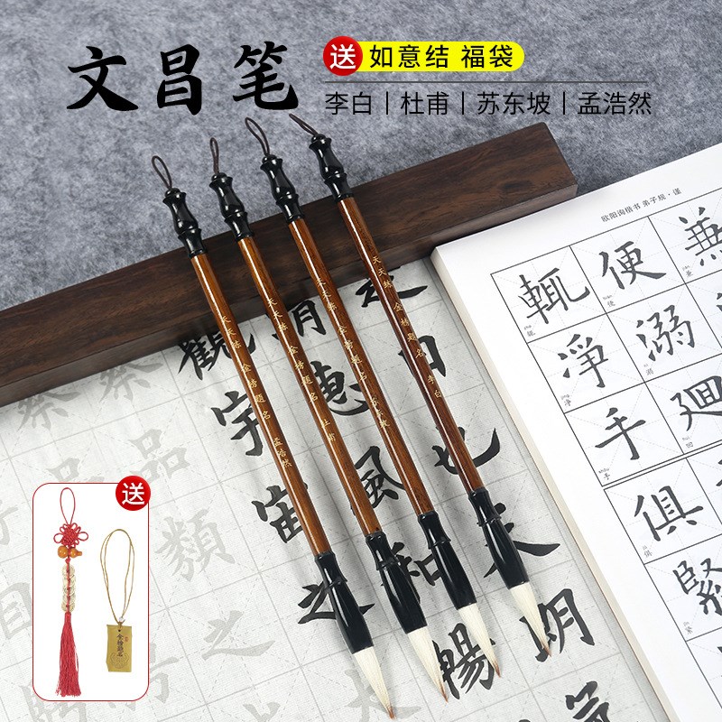 文昌笔挂摆件金榜题名李白毛笔8针鸡翅木龙头笔架套装文房四宝