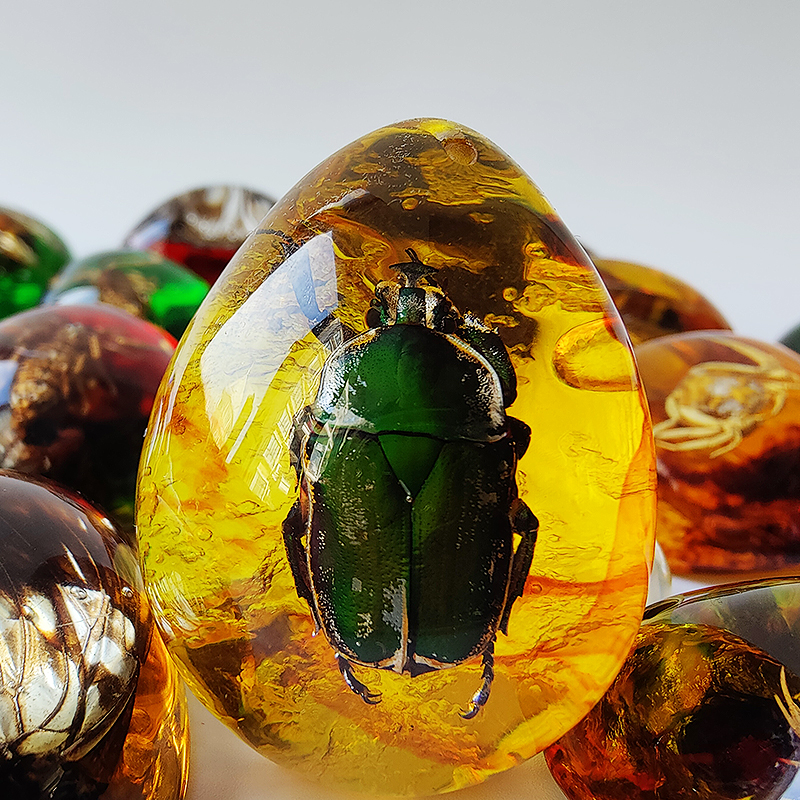 天然琥珀蝎子昆虫标本虫珀项链带虫子吊坠挂件纯手工制作儿童科普