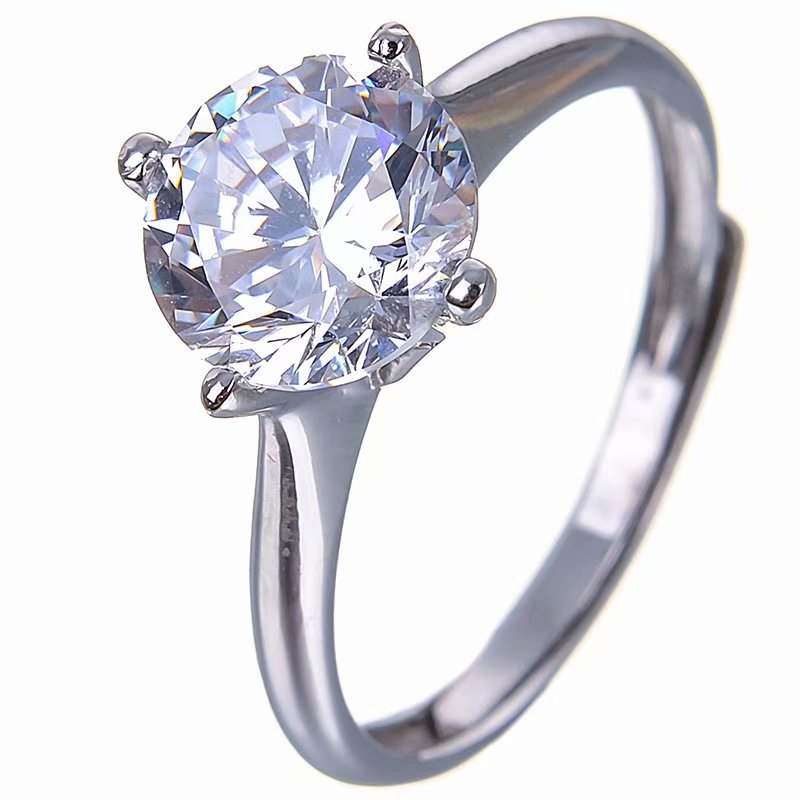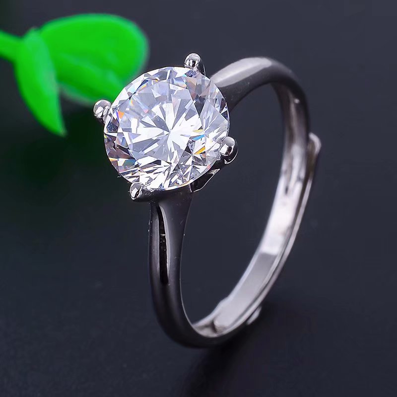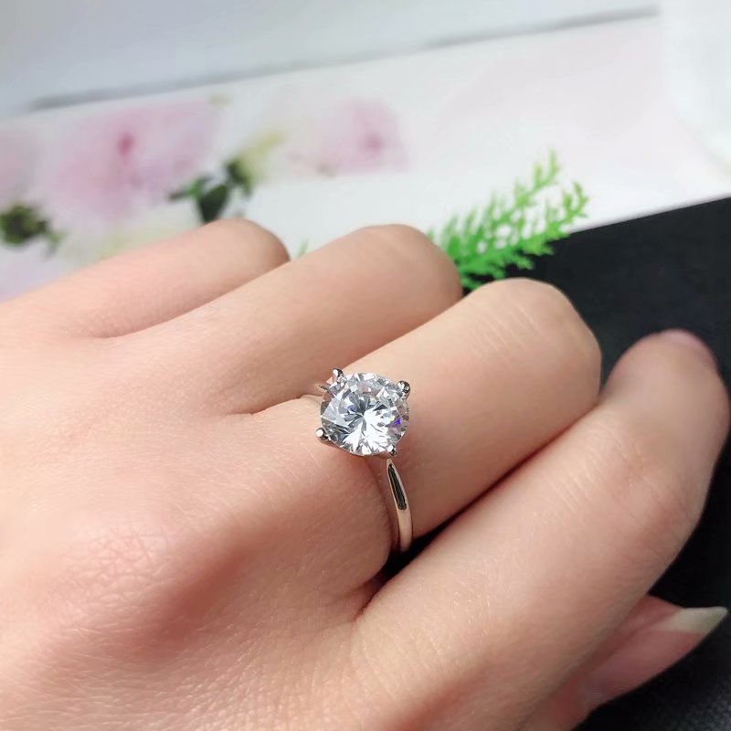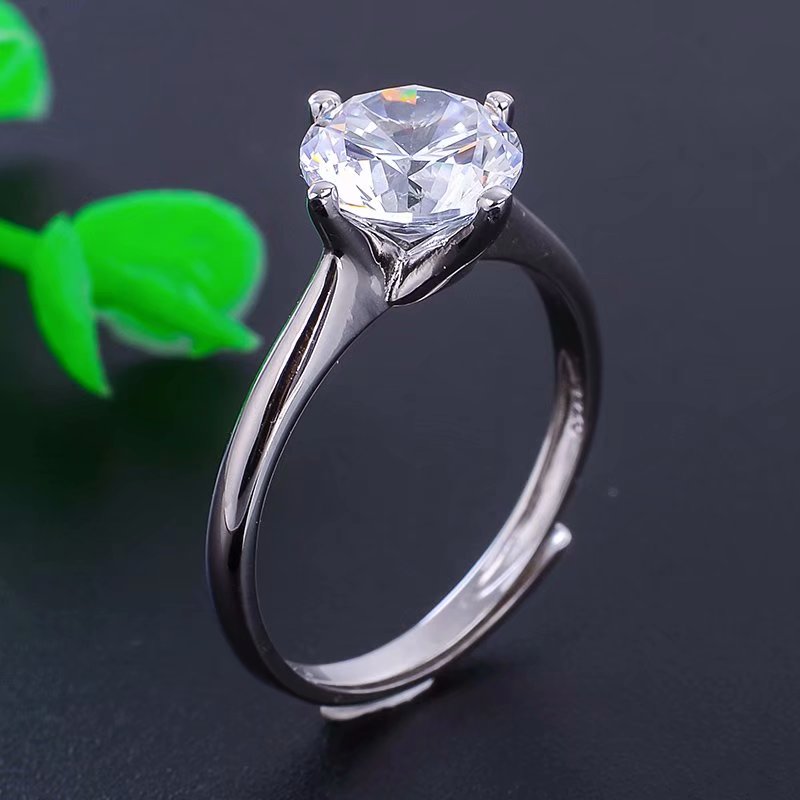 S925银1.5ct莫桑钻戒指成品 空托圆7mm镶嵌莫桑钻锆石瑞士钻等