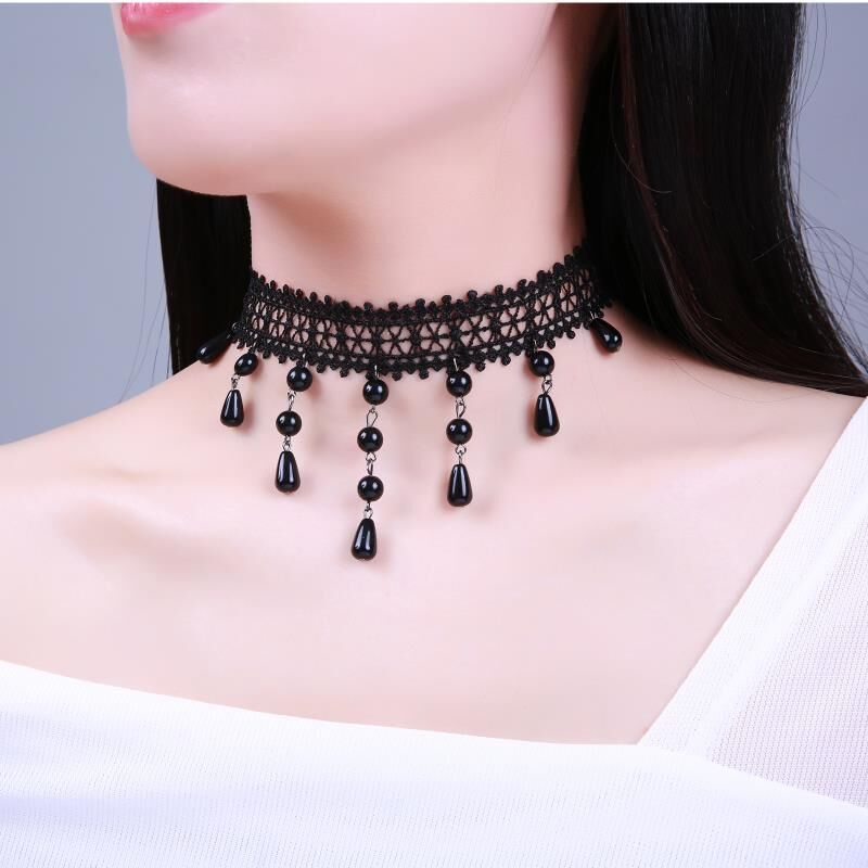 蕾丝低领配饰f项链女锁骨链女夏遇鑫脖子饰品黑色颈带项圈颈饰颈