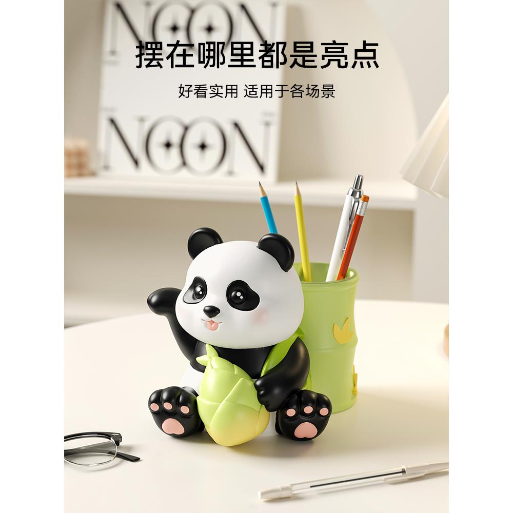 创意熊猫笔筒办公室桌面摆件轻奢高级儿童男女孩生日礼物可爱装饰