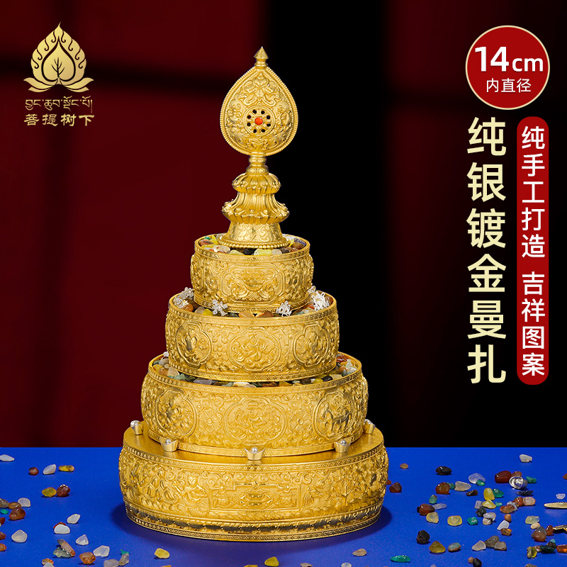 供修曼扎盘S990纯银镀金三十七堆手工曼扎家用37堆曼茶罗大号14cm