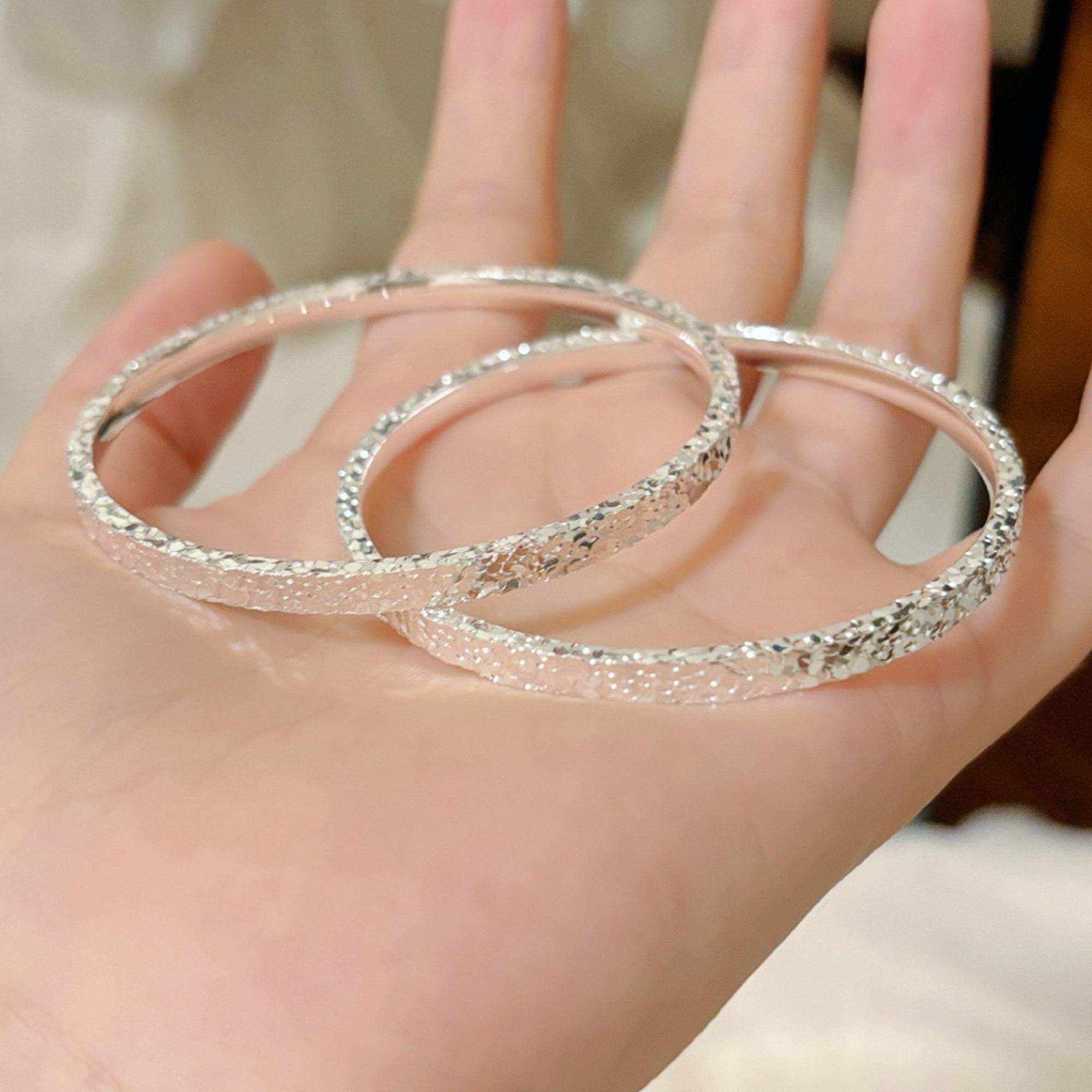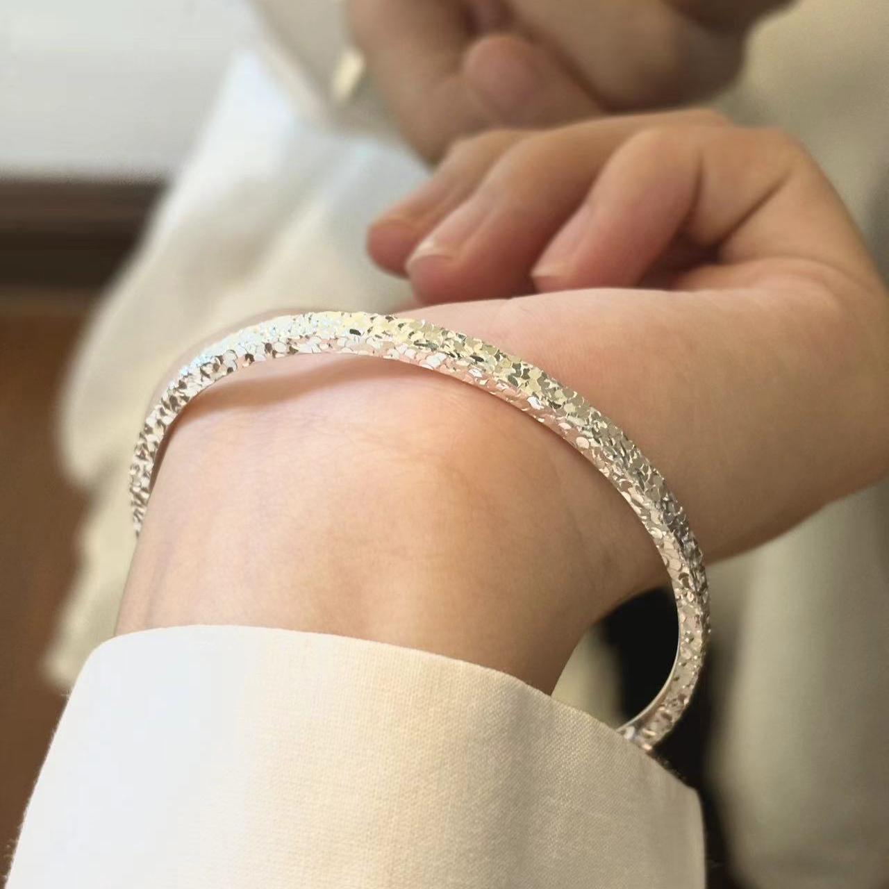 碎冰冰9999足银手镯女实心纯银镯子碎银子轻奢送礼物银手环手链