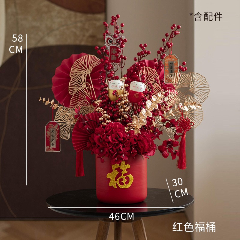 福桶摆件客厅轻j奢高档乔迁新居礼品结婚新房红色新年装饰搬家礼