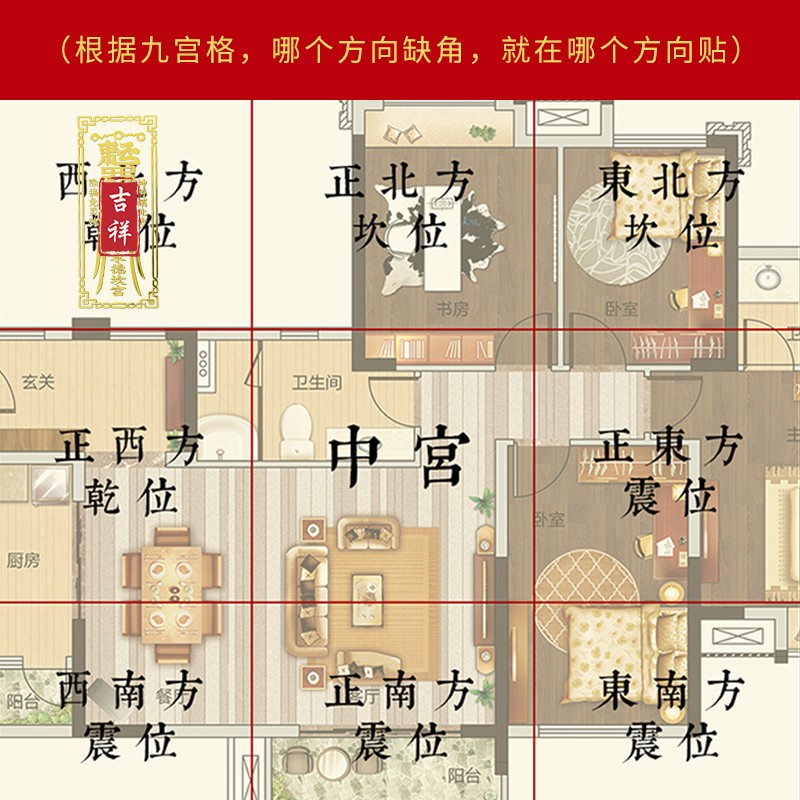 房屋方位缺e角补角金属贴化解挂件门对门楼梯对卫生间卧室隐形门