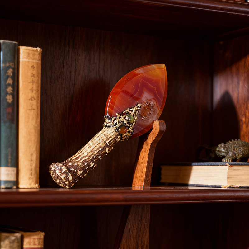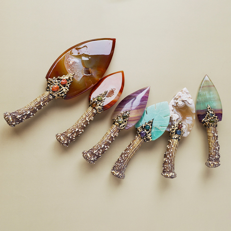 跨境红玛瑙火苗匕首模型雕刻件彩萤石水晶半宝石仿真刀具家居装饰