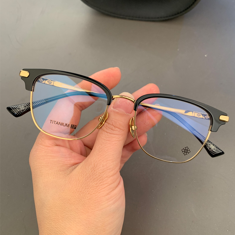 马吉他眼镜框架新品纯钛超轻猫眼金丝边复古全框百搭近视平光镜架