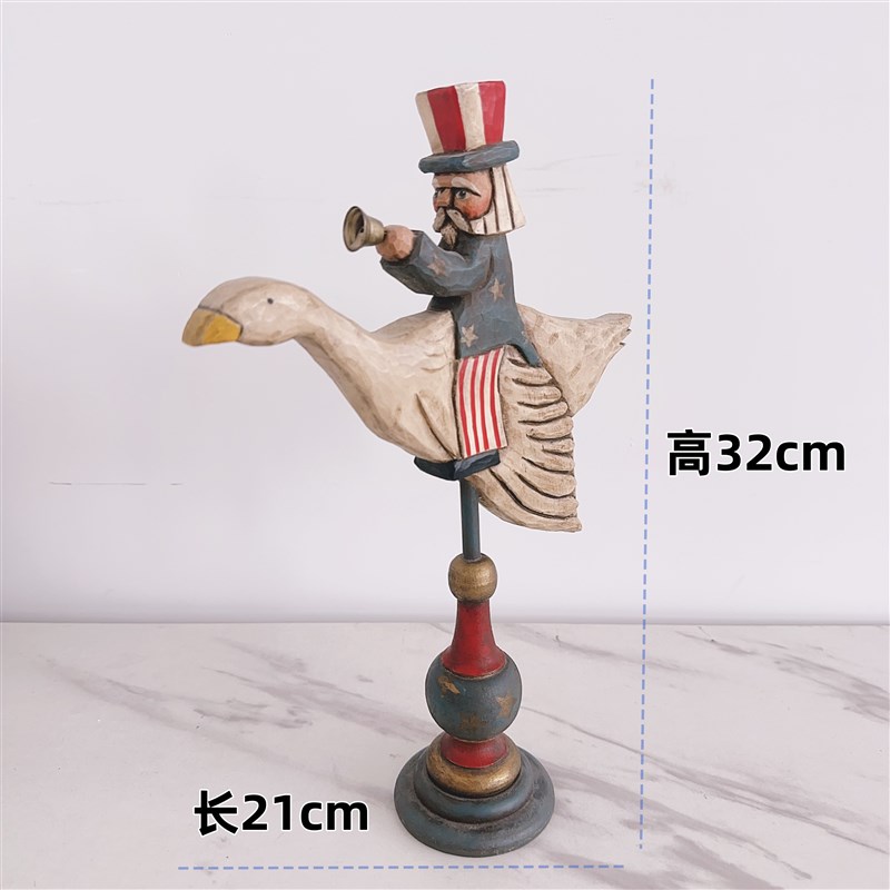 复古怀旧富丽大脚骑鹅创意木刻S工艺品装饰摆件