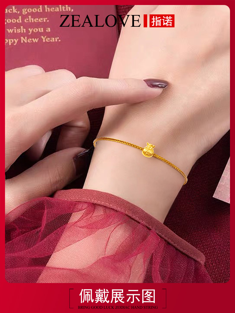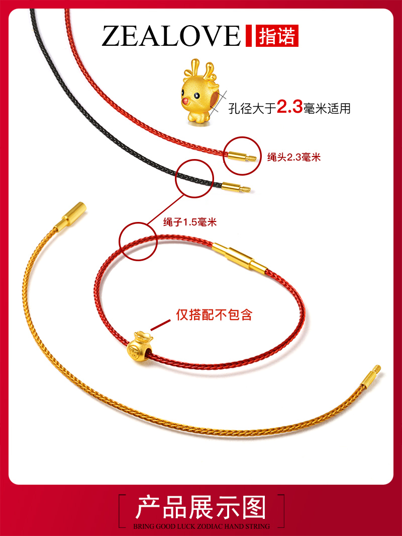 细款转运珠手绳串穿小孔金珠黄金编织皮绳红绳防水钢丝绳手链女