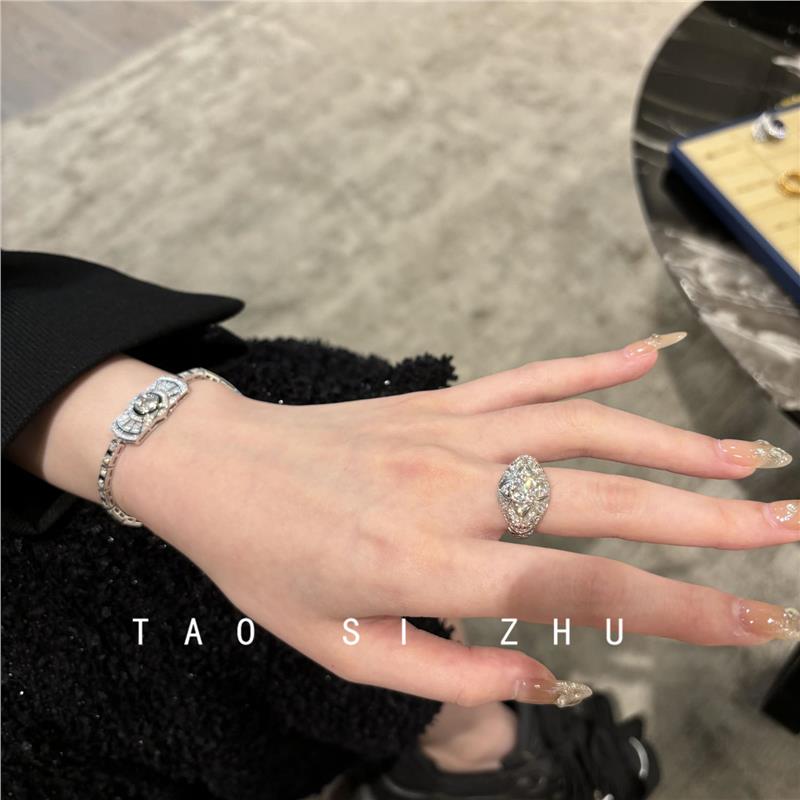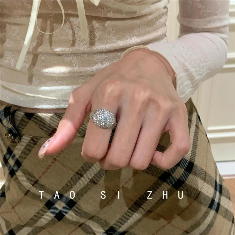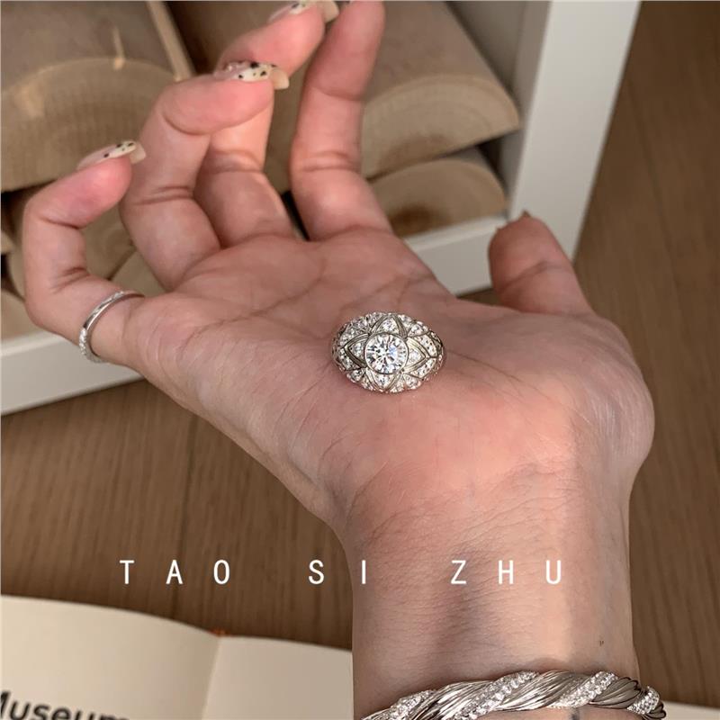 仿满钻四叶花戒指女轻奢高级感开口戒星芒食指戒小众设计百搭指环