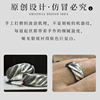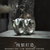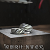 原创丝绸纹手工素银戒S999纯银戒指男女小众设计感开口可调节简约